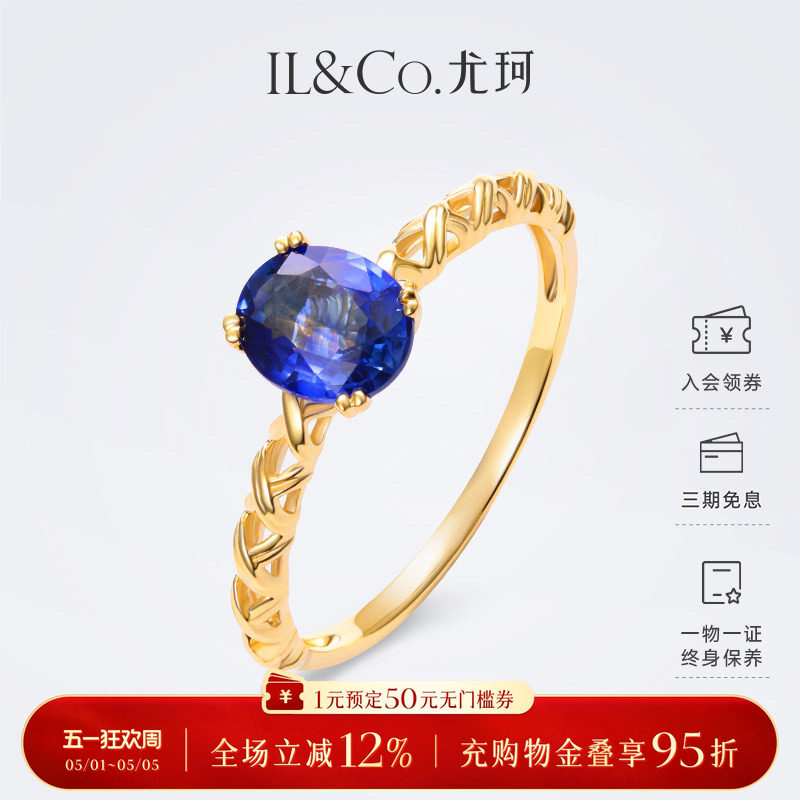 ILCO尤珂「荆棘玫瑰」黄18K金1克拉天然蓝宝石戒指轻奢彩宝送礼女