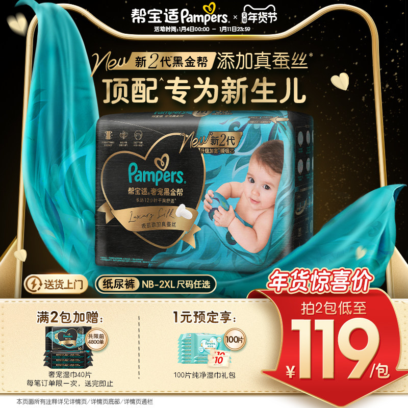 【新生儿顶配】帮宝适黑金帮纸尿裤拉拉裤真蚕丝NB-4XL超薄尿不湿
