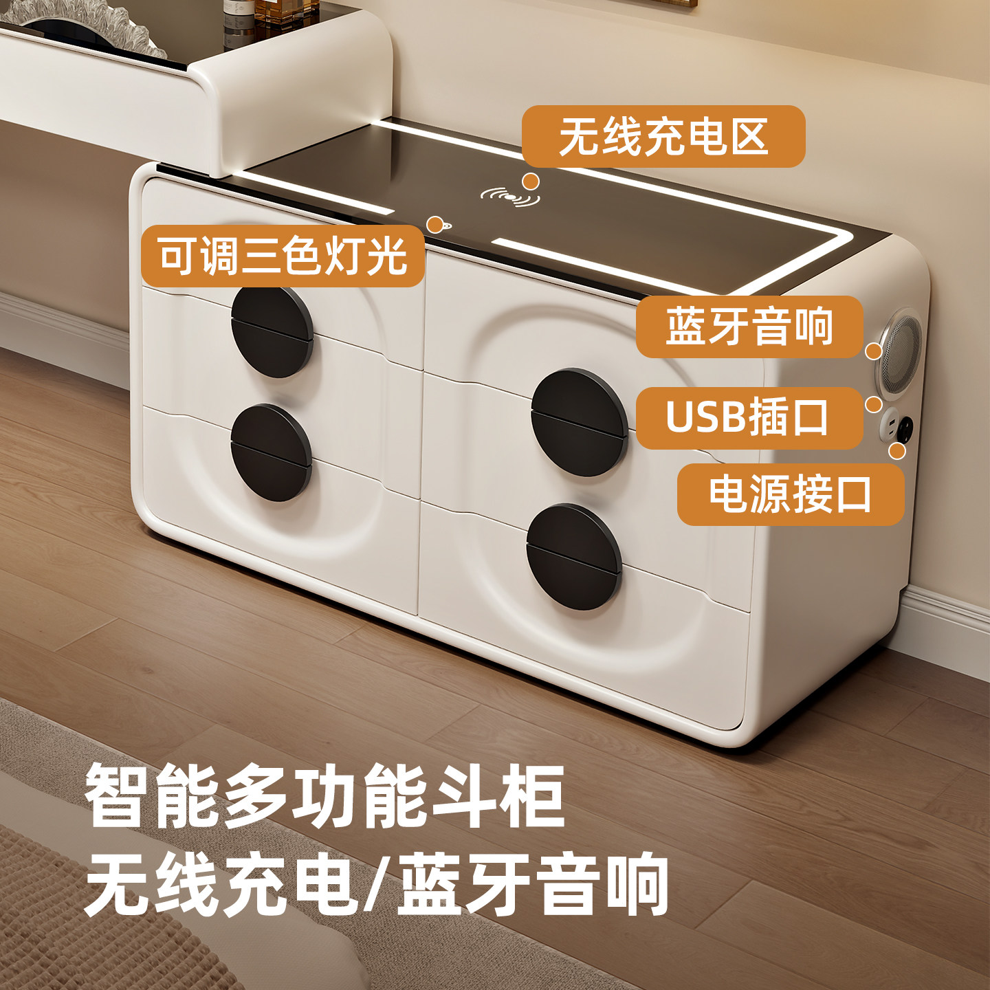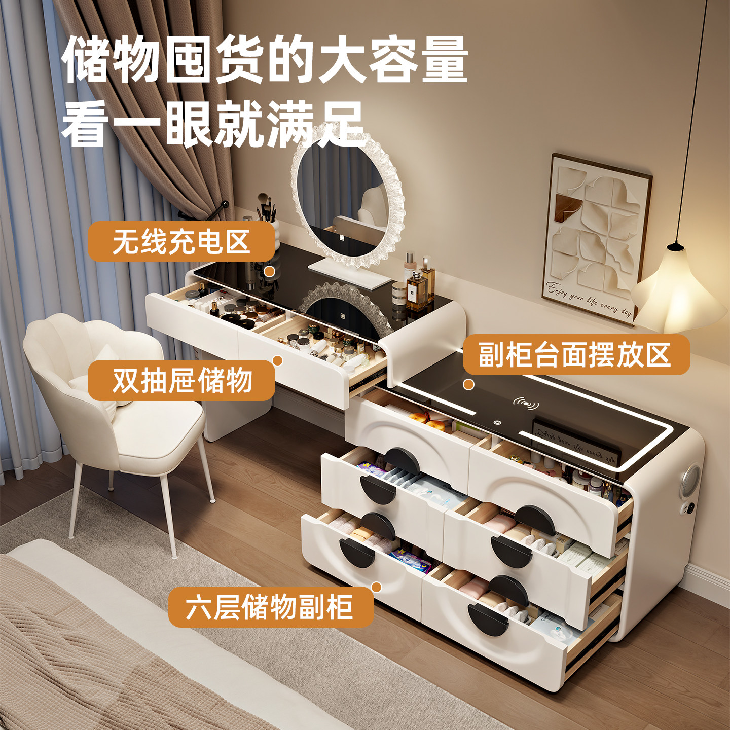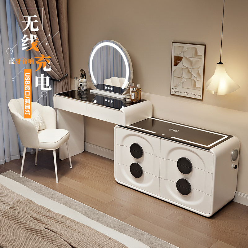 新款智能实木多功能梳妆台卧室现代简约化妆桌斗柜一体床尾化妆台