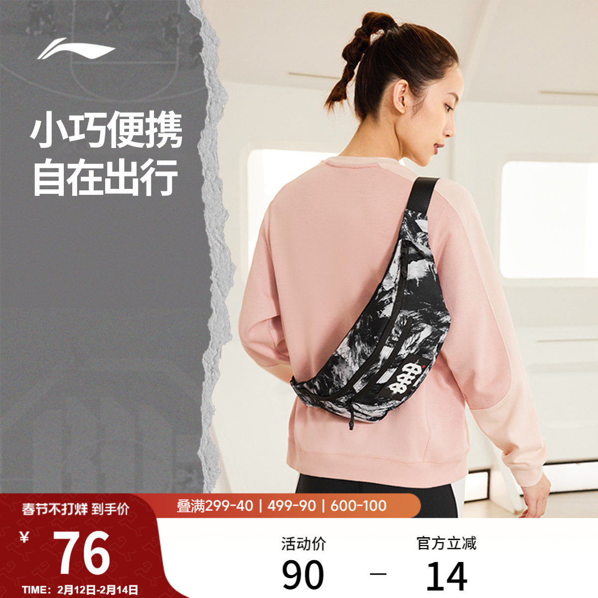 李宁斜挎包男女BADFIVE单肩包手机包跑步男士运动包休闲腰包胸包