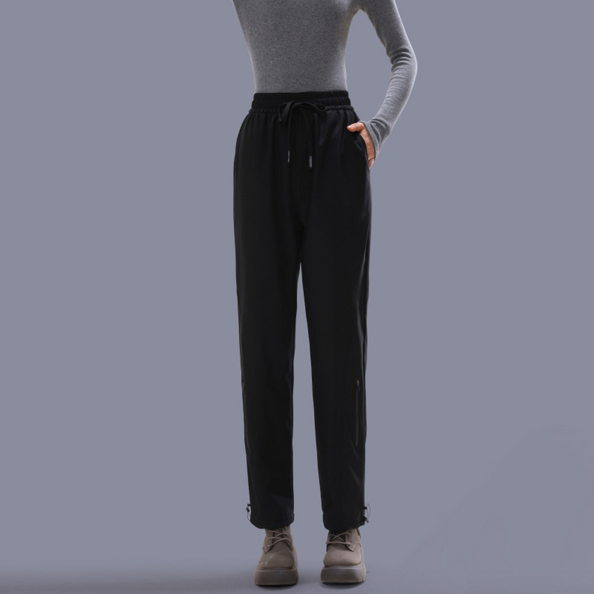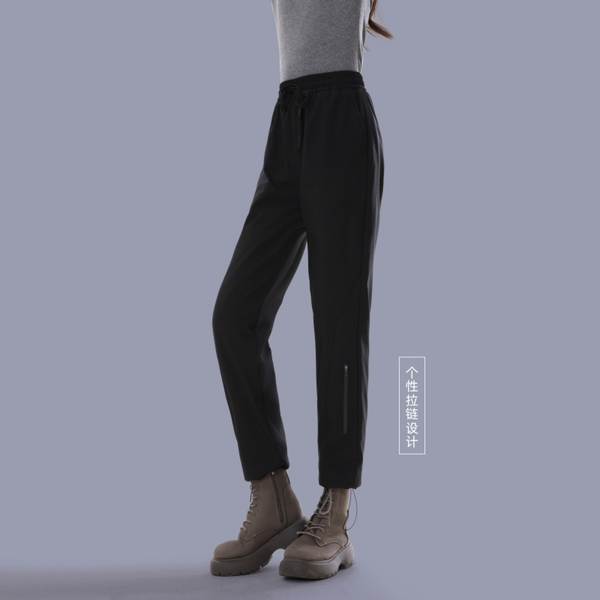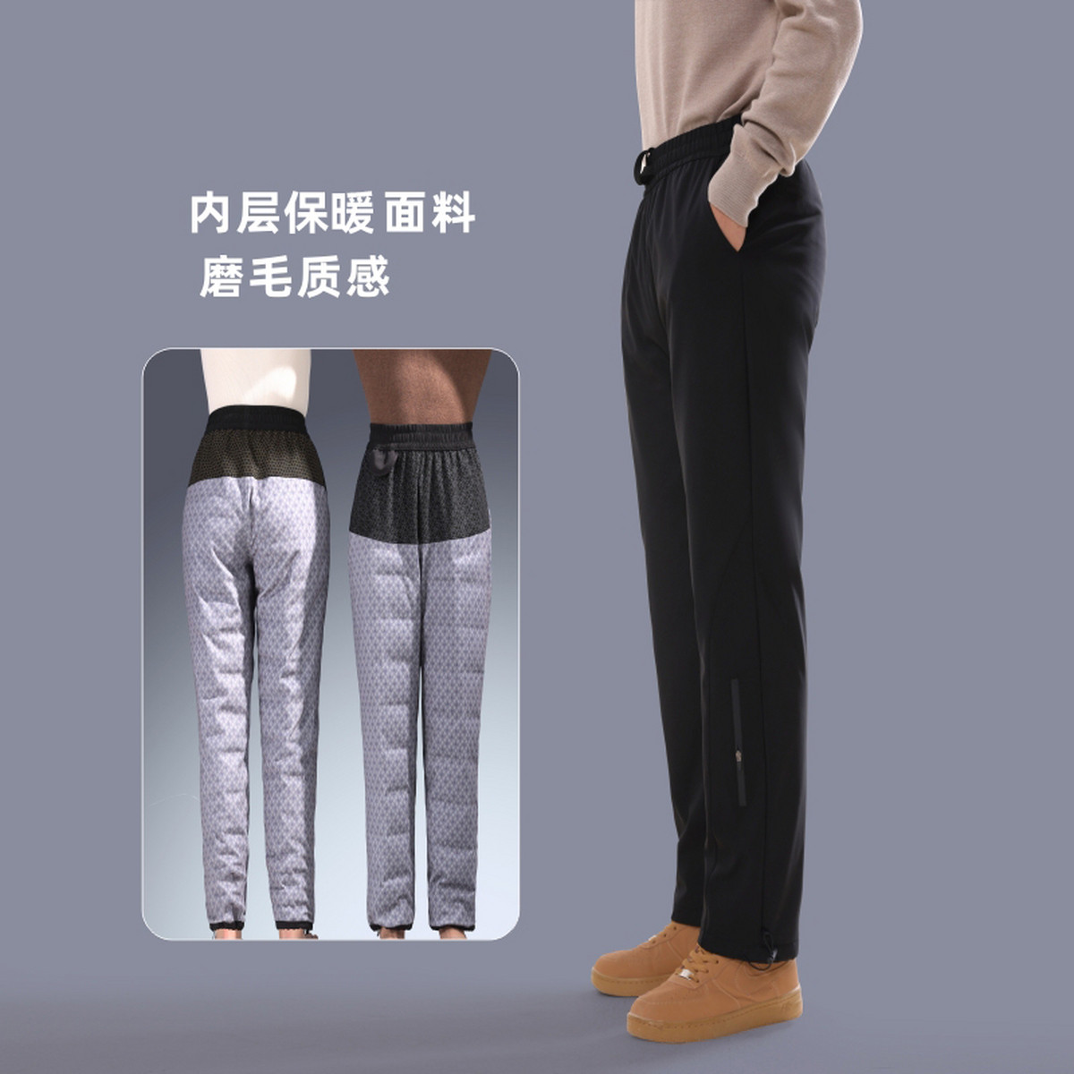 雪中飞2025冬新款男女情侣保暖羽绒裤纯黑系带修身显瘦时尚潮流