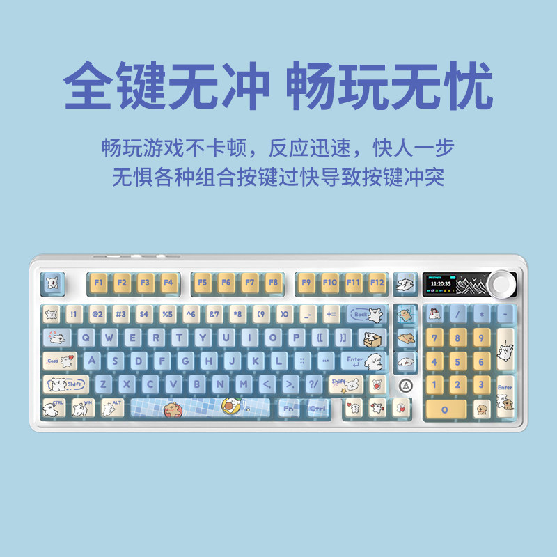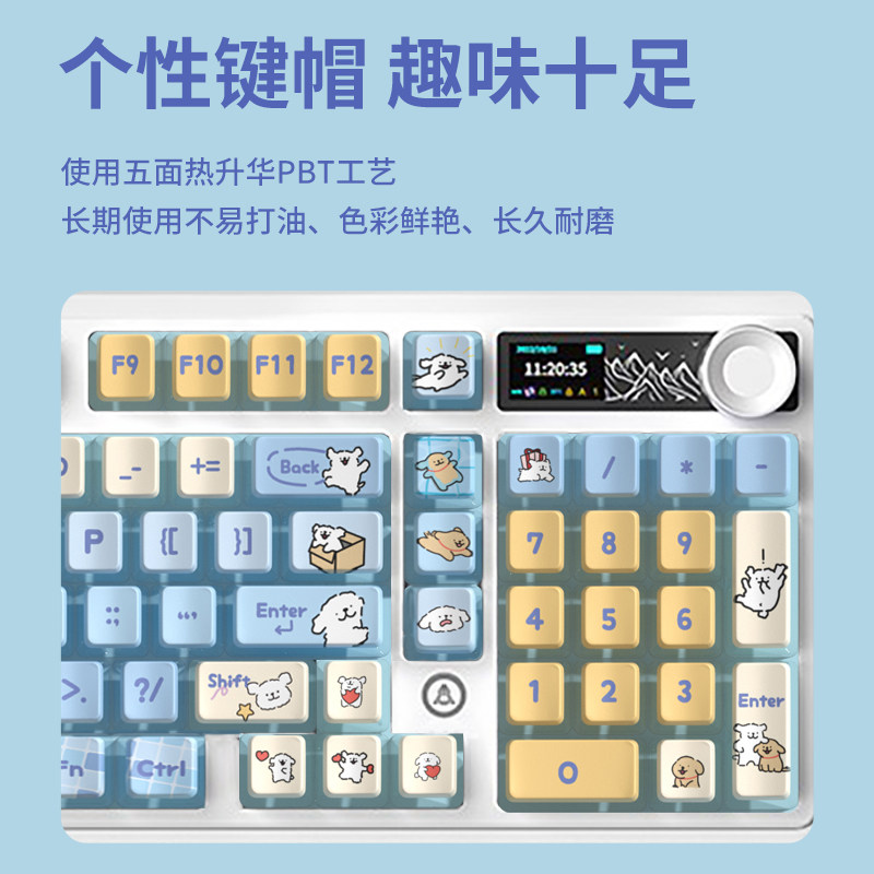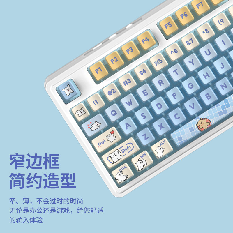 黑爵AK980线条小狗联名机械键盘无线电竞游戏套件可爱女生键盘