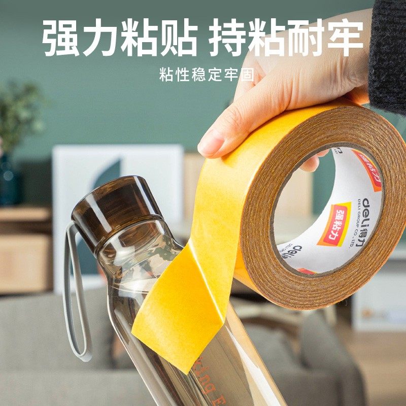 得力网格双面胶高粘度布基胶带纤维强力透明胶带固定墙面地板地毯专用网纹网状无痕超粘春联防水加厚不留痕