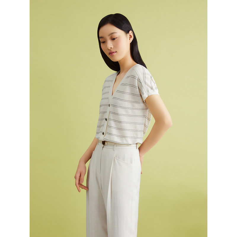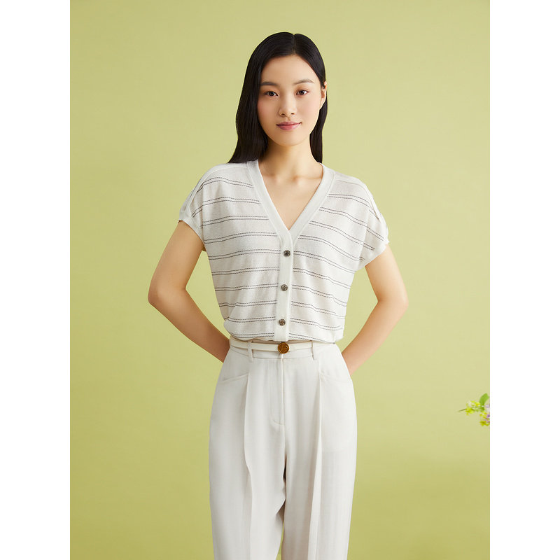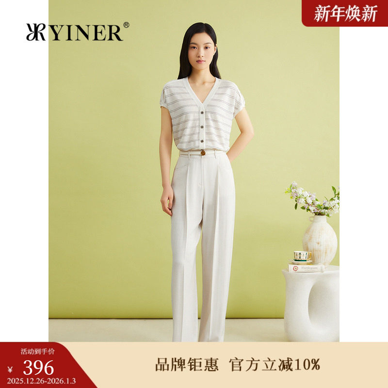 【真丝系列】YINER音儿女装夏季含桑蚕丝细条纹毛针织衫