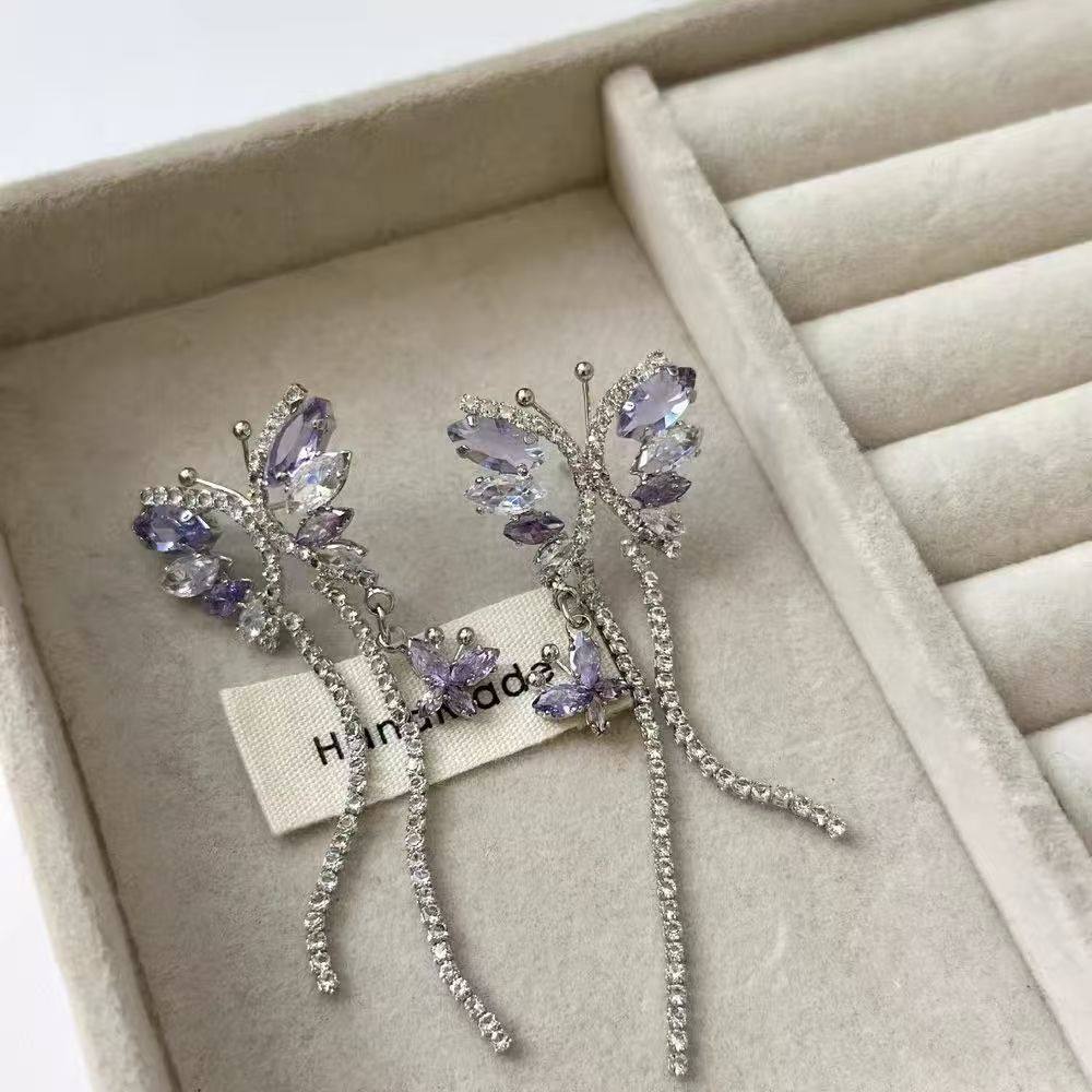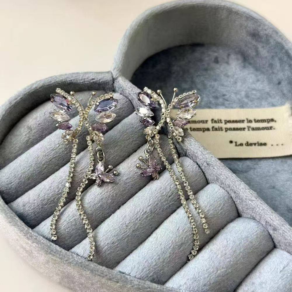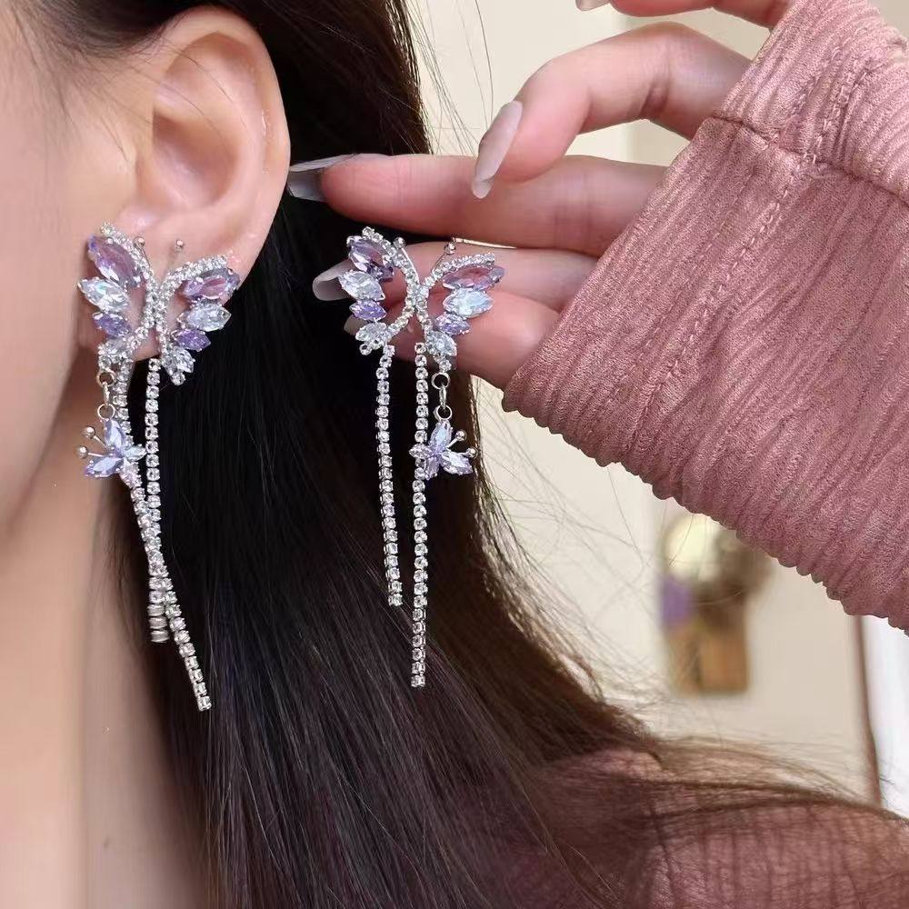 轻奢时尚蝴蝶甜美流苏耳环女小众超仙高级感紫色长款百搭耳钉耳饰