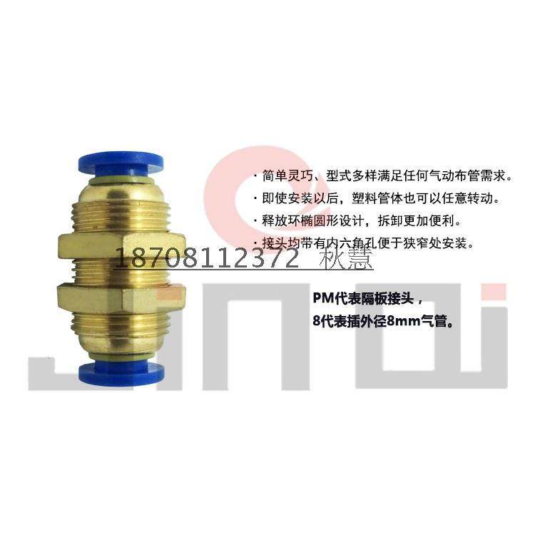 气动元件气管快速接头穿板 隔板接头PM-04 06 08 10 12全规格