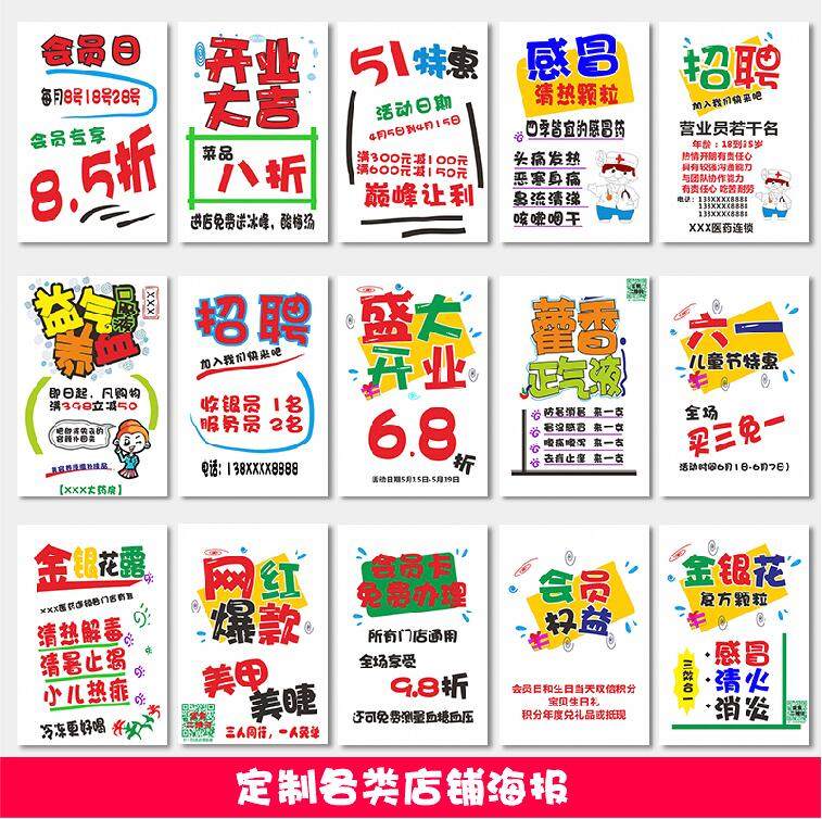 招聘导购营业服务员服童装药店美容广告宣传海报定制手写绘写真