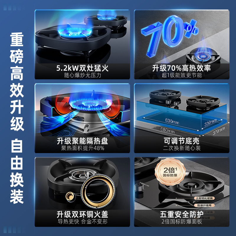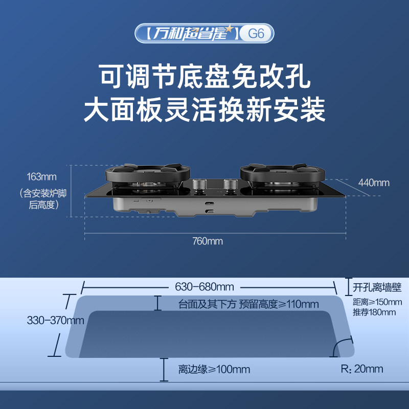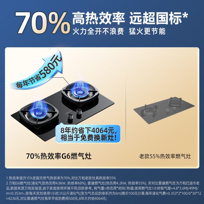 [政府补贴]万和嵌入式燃气灶煤气灶炉灶天然气液化气台式双灶具G6