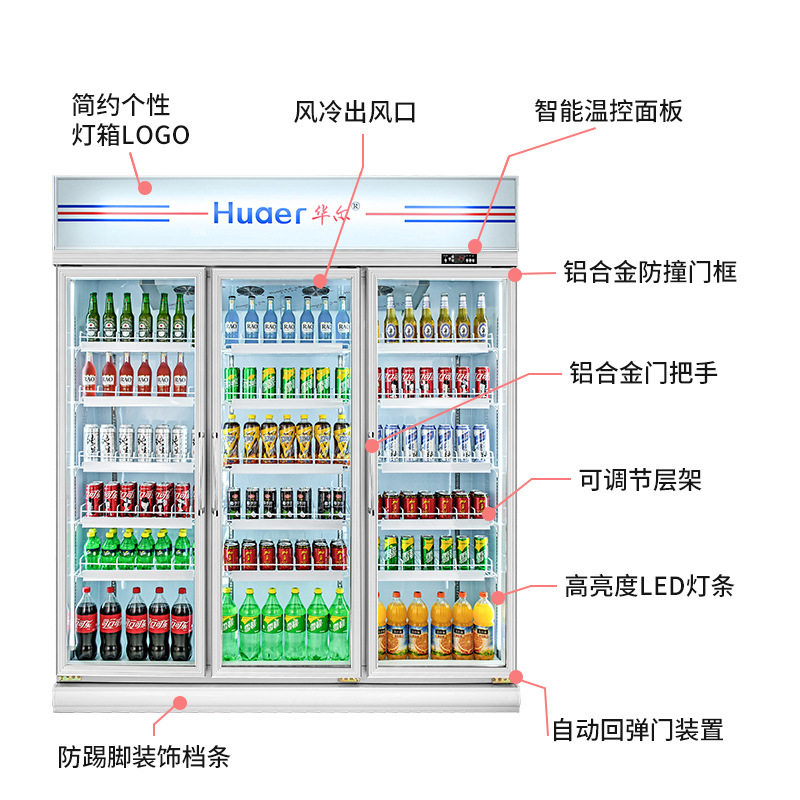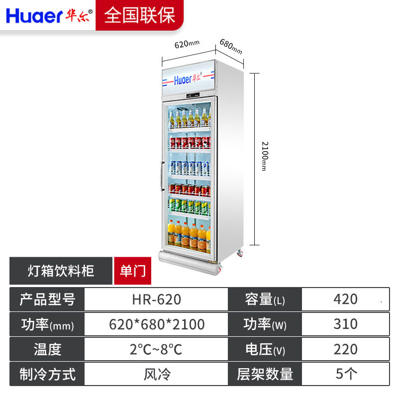 跨境直供冷藏柜单门酒水饮料柜连锁店展示柜冰箱OEM厂家华尔冰柜