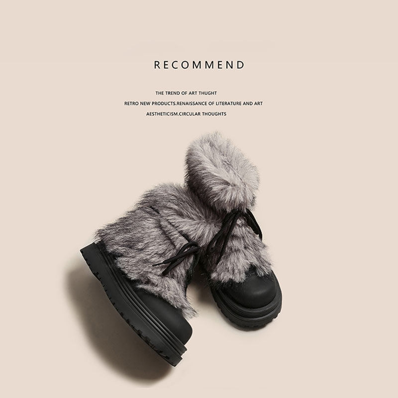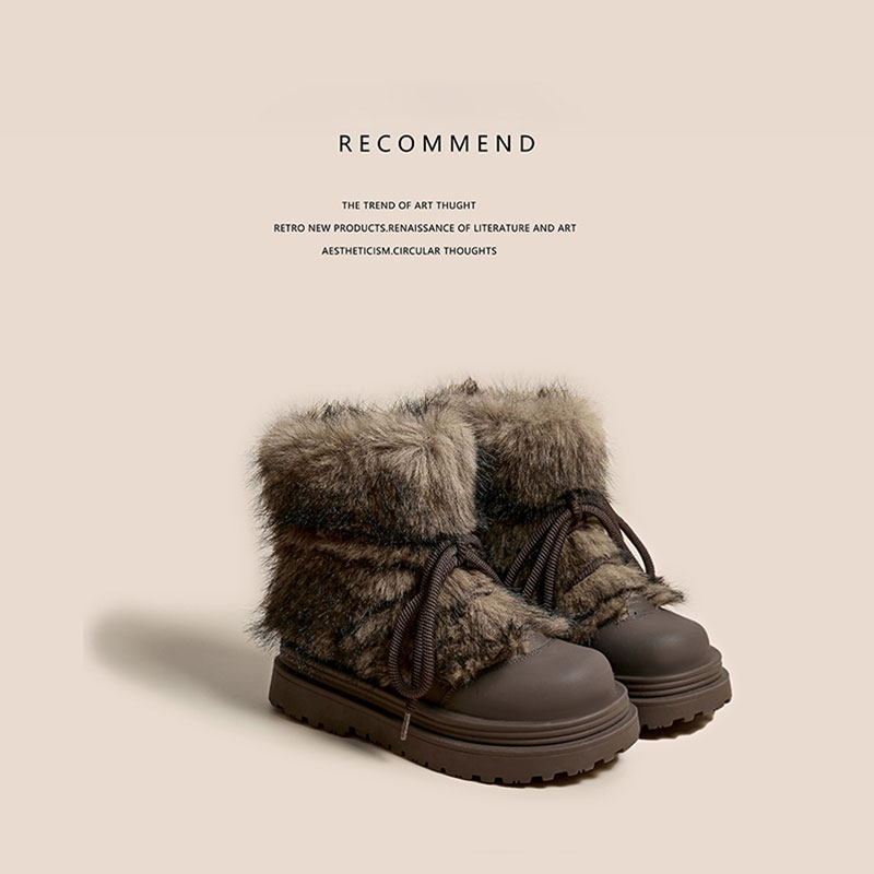 毛毛靴防滑雪地靴女秋冬加厚保暖中筒棉鞋厚底增高大头短靴子防水