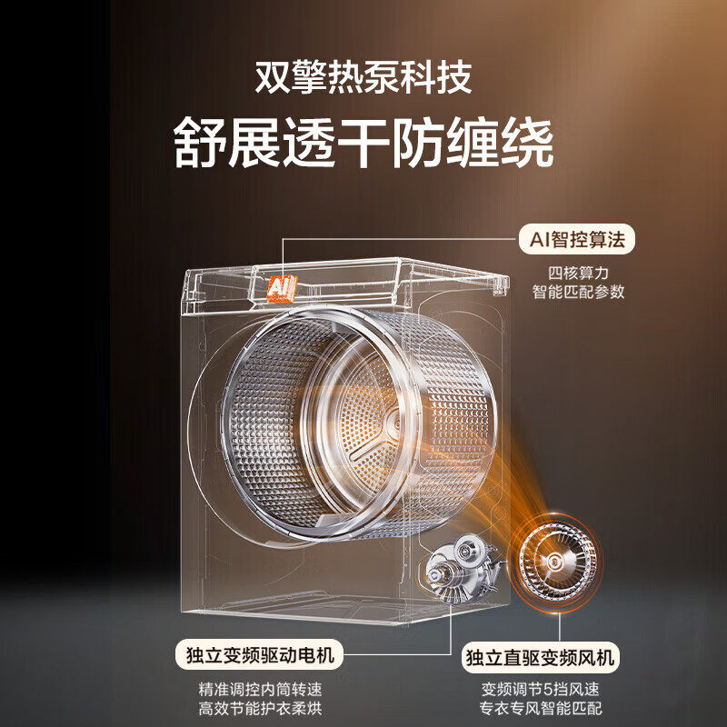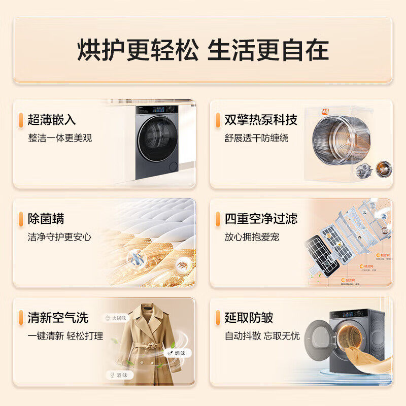 [热泵烘干机]海尔干衣机53E家用滚筒10KG大容量变频除菌77E旗舰店