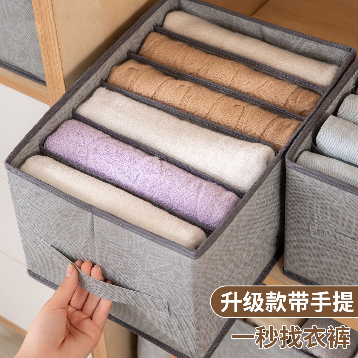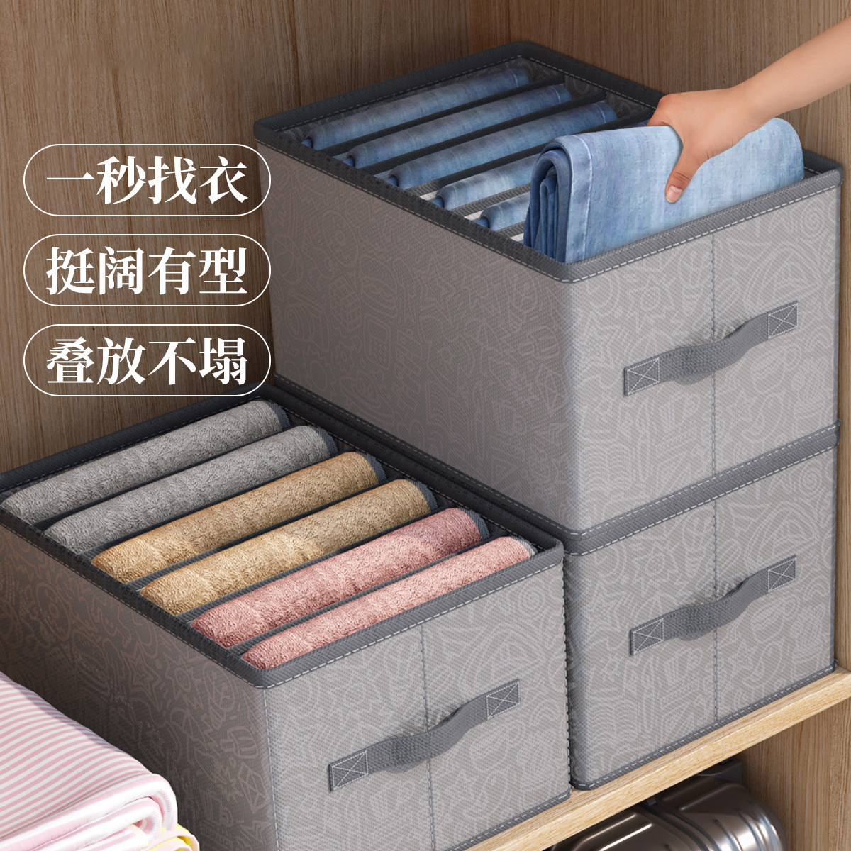 拍1发4衣服收纳筐神器布艺装衣物衣柜分层收纳箱家用框裤子整理盒