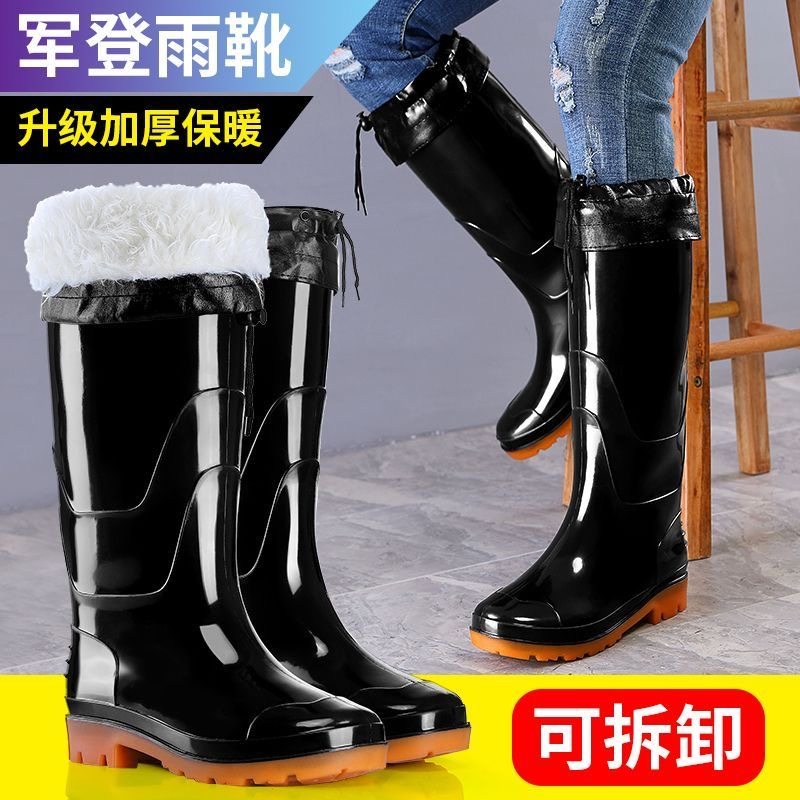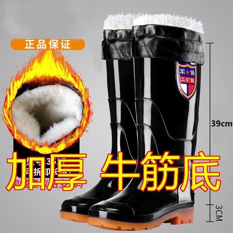 加厚绒棉雨鞋男款高筒防水防滑水靴水鞋厨房钓鱼胶鞋耐磨短筒中筒
