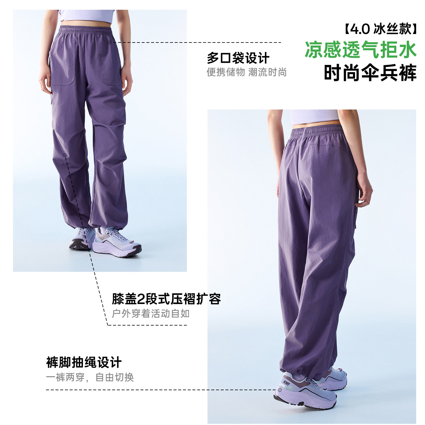安踏山壳裤丨大地之壳运动长裤女裤春季户外直筒软壳裤登山伞兵裤