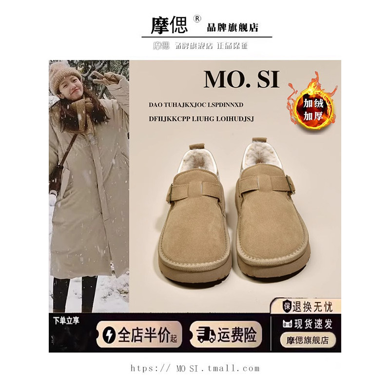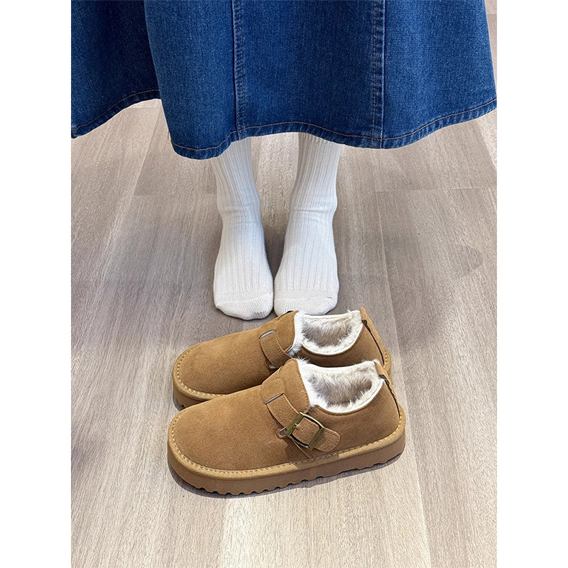 平底勃肯鞋女加绒保暖雪地靴女2025新款冬季乐福鞋豆豆鞋博肯棉鞋