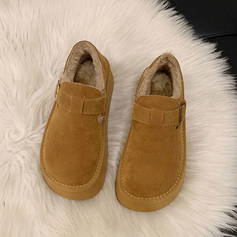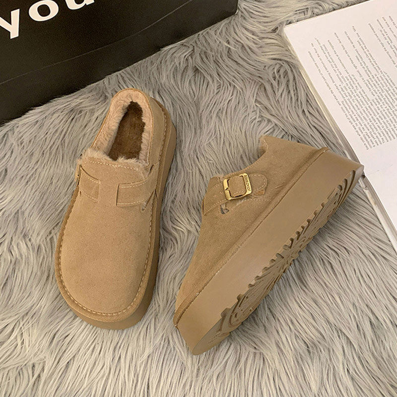 TATAFOCUS~加绒毛毛鞋韩版圆头皮带扣2025冬季新款勃肯鞋女35-28