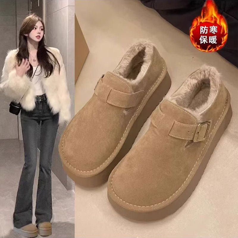 加绒加厚豆豆鞋勃肯鞋女2025冬季厚底乐福鞋博肯棉鞋子雪地靴单鞋
