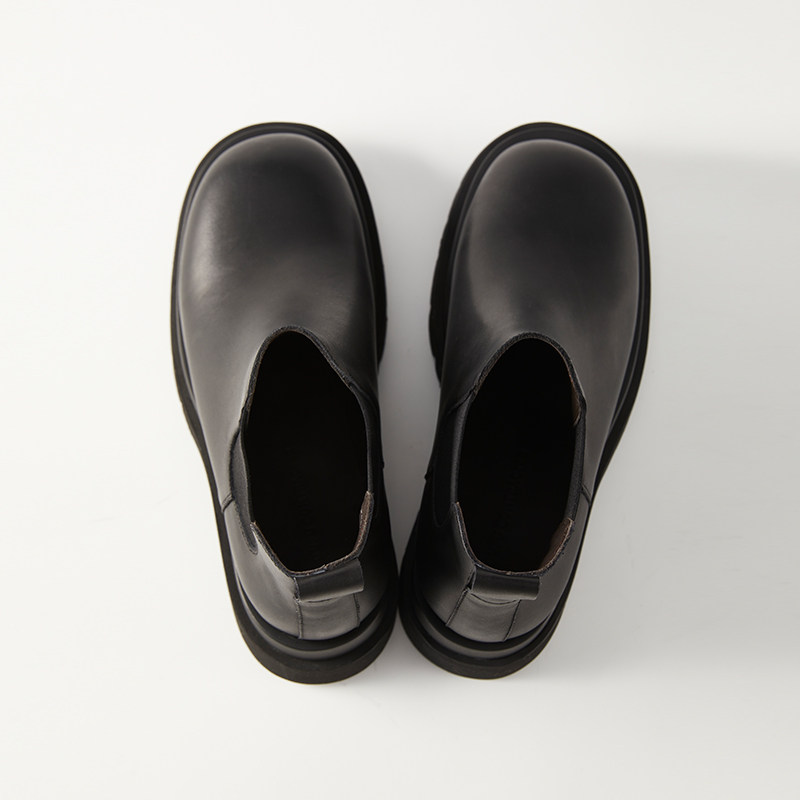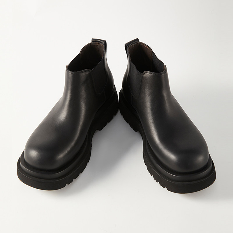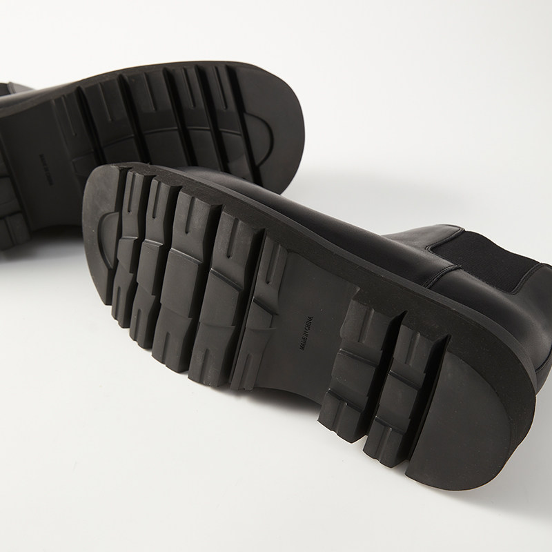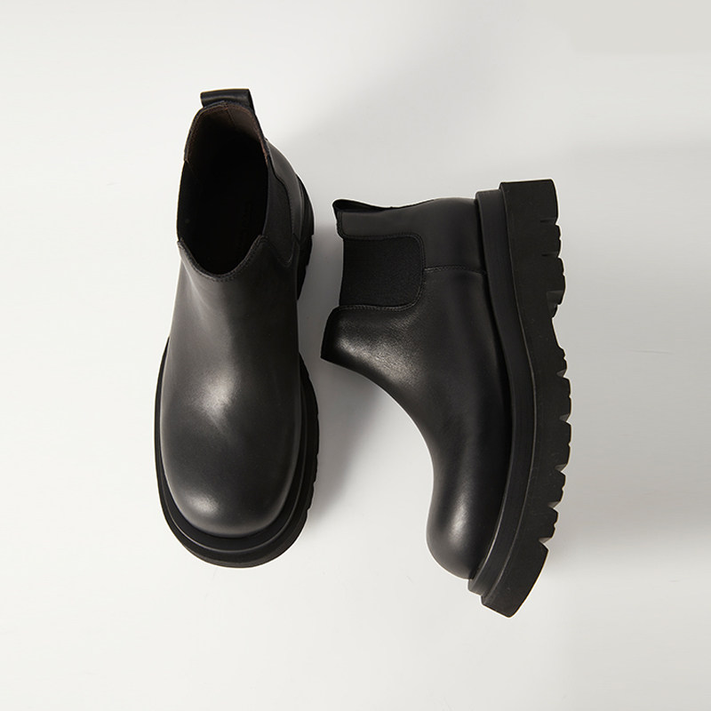 DUPU CONTRACTED厚底中筒切尔西皮靴 无鞋带设计牛皮革舒适耐磨