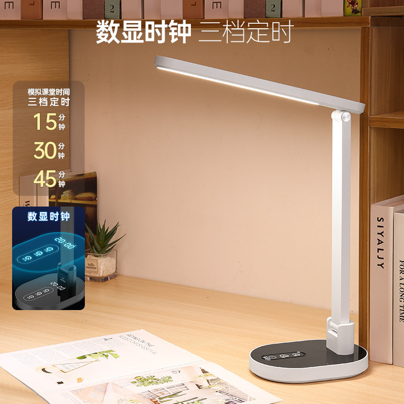 台灯学习专用学生2025新款宿舍书桌时钟阅读床头灯防近视护眼神器