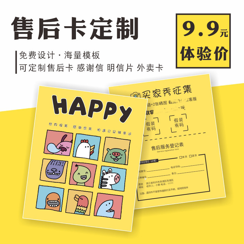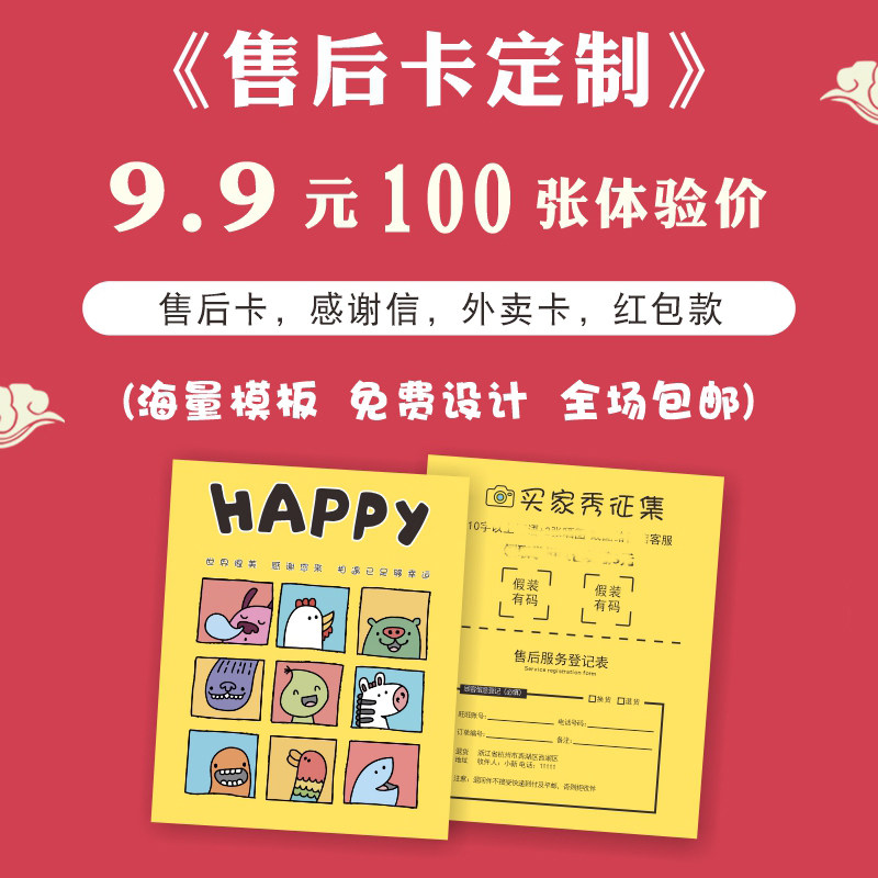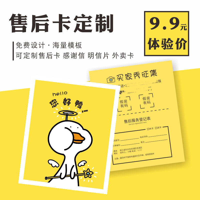 售后服务卡片定制免费设计简约文艺小清新天猫淘宝网店晒图个性