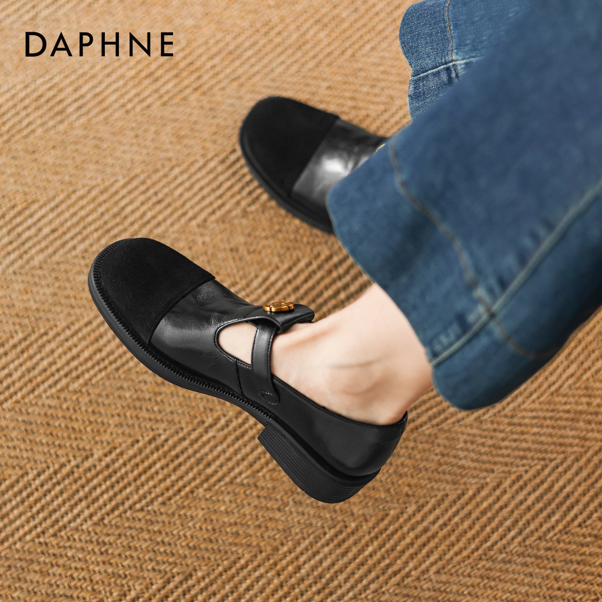 达芙妮黑色厚底乐福鞋2026新款春季英伦风小皮鞋豆豆鞋一脚蹬单鞋