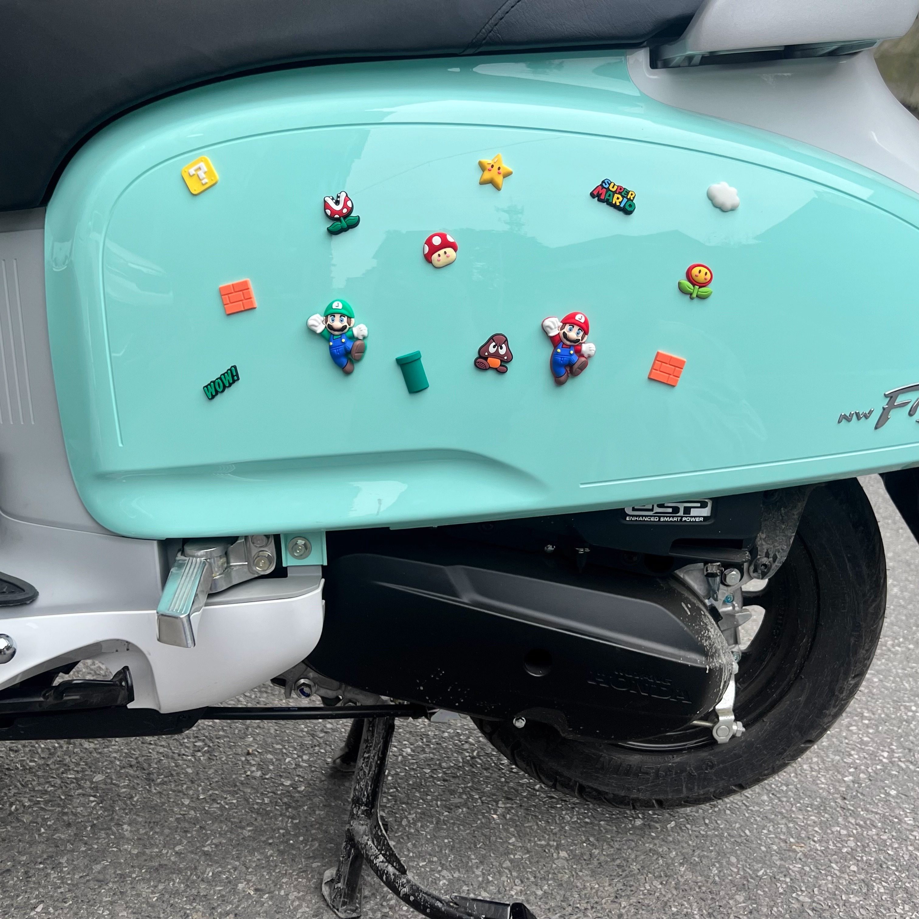 适用本田NWF125超级玛丽立体蘑菇摆件车身马里奥软胶公仔装饰贴纸