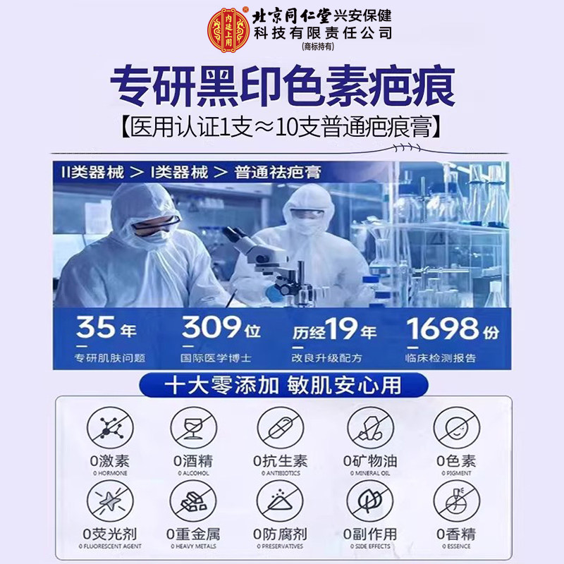 北京同仁堂祛疤膏疤痕去黑印色素沉淀黑祛痘印修复淡化硅酮沉着