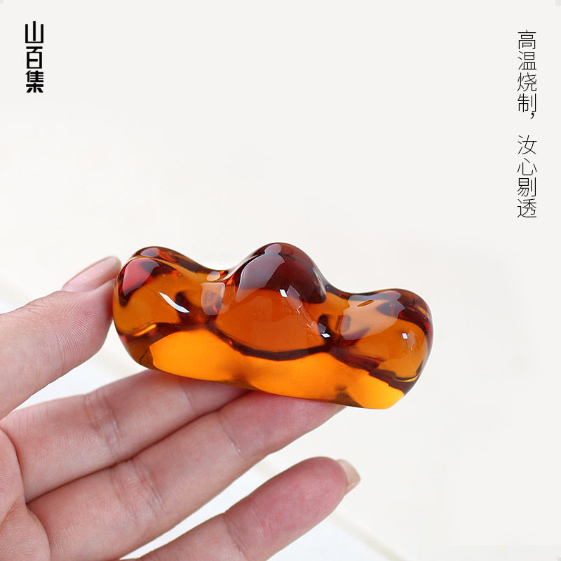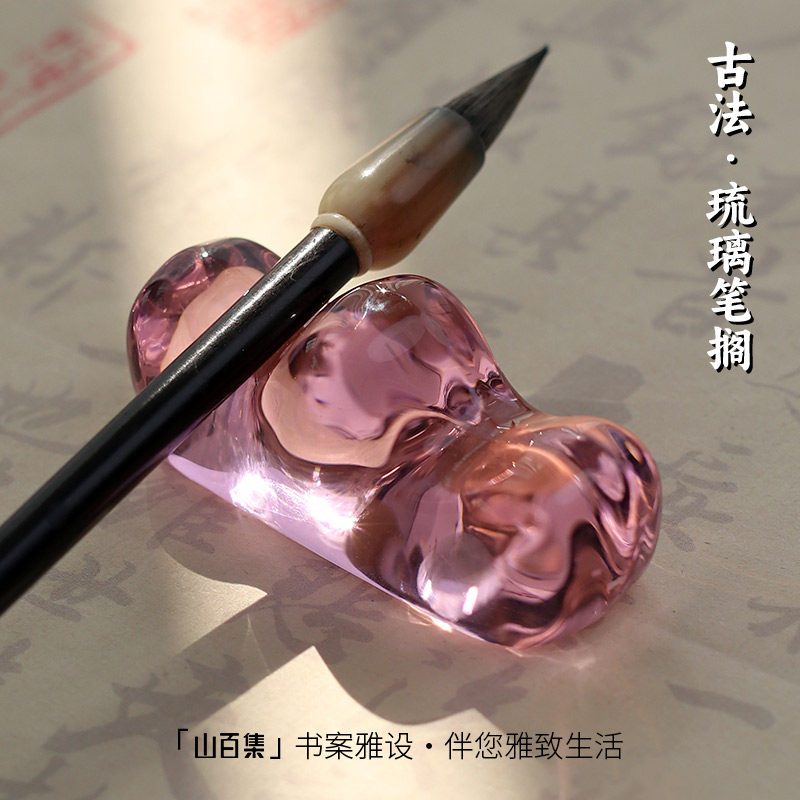山百集粉晶镇纸尺笔山琉璃笔搁书法摆件优质笔架山毛笔创意纸镇尺