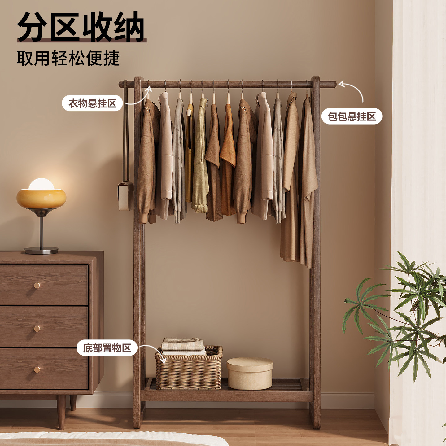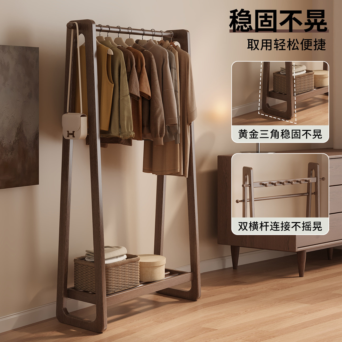 实木衣帽架落地卧室家用2025新款挂衣服架子客厅衣架置物架办公室