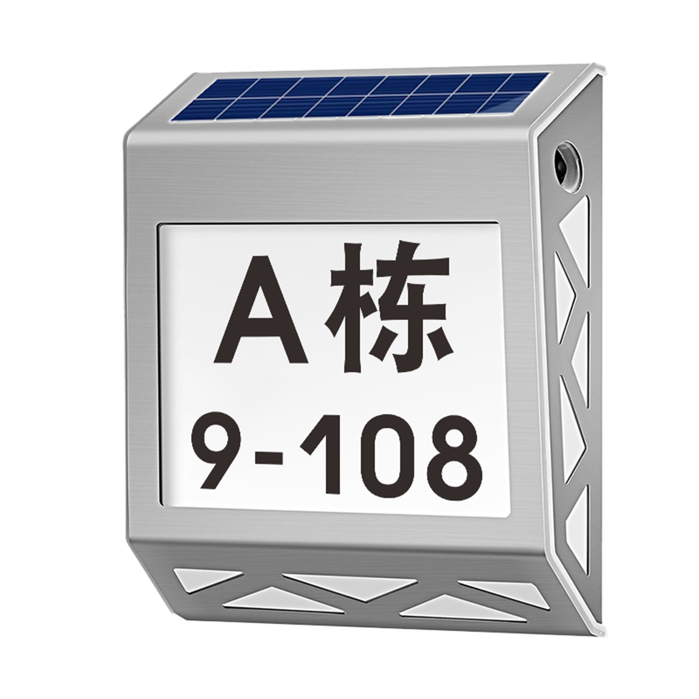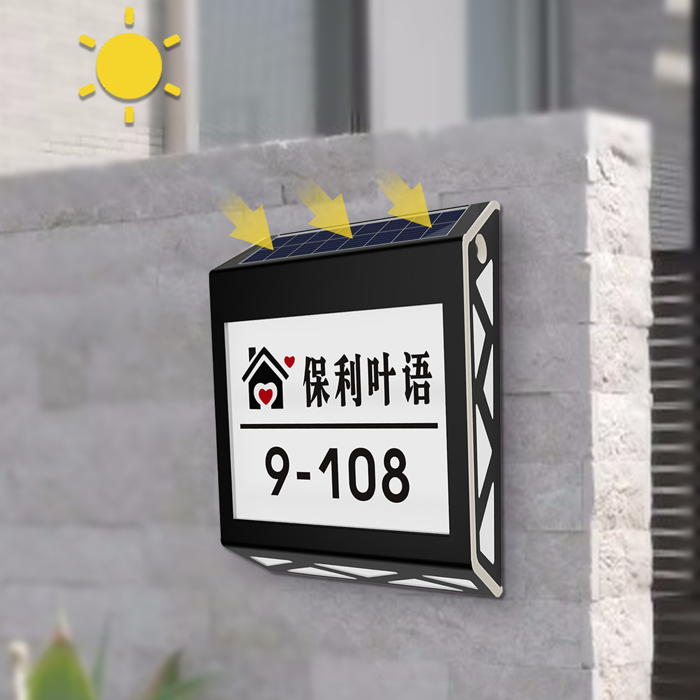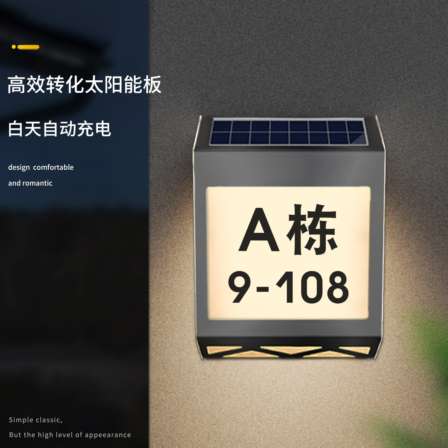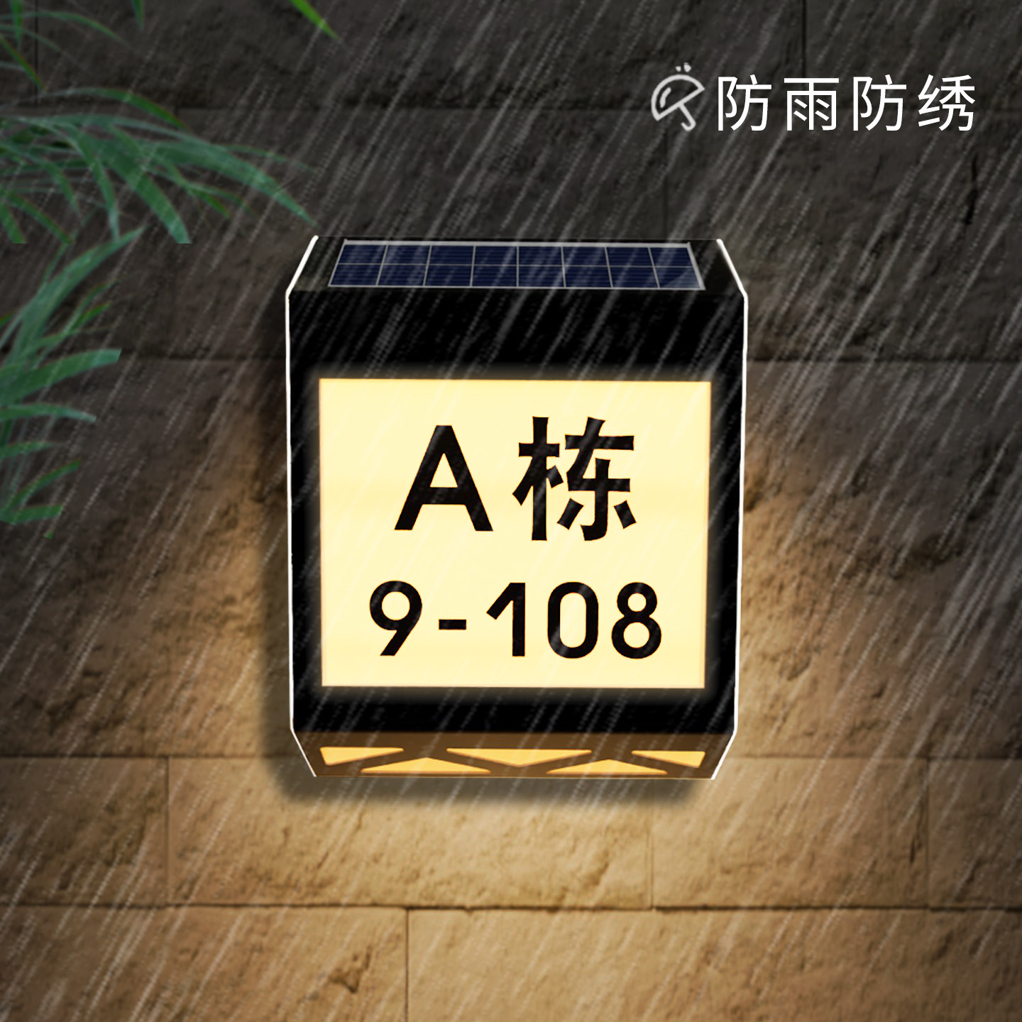 室外太阳能充电门牌灯定制别墅小区庭院街道房号牌户外防水号码牌