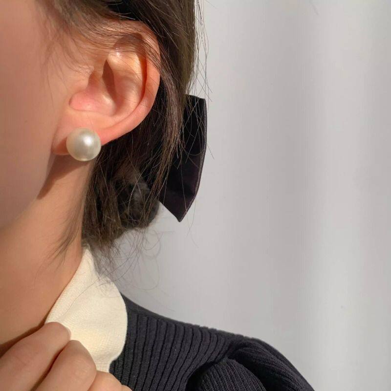 fever同款珍珠耳钉999纯银施家耳环2025新款爆款高级轻奢正圆耳饰