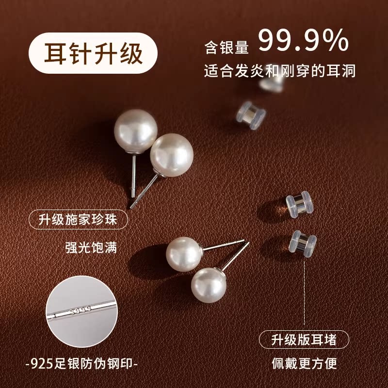 施家珍珠耳钉轻奢高级感女养耳洞耳环2025年新款爆款气质时尚耳饰