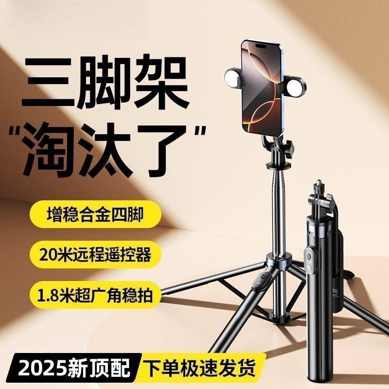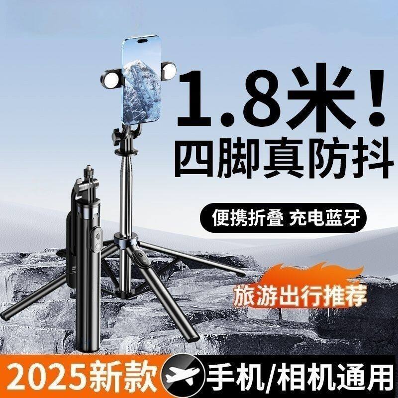 2025新款自拍杆旅游便携手机通用拍照神器四轴360度旋转手持补光灯直播视频防抖vlog专用拍摄架落地三脚支架