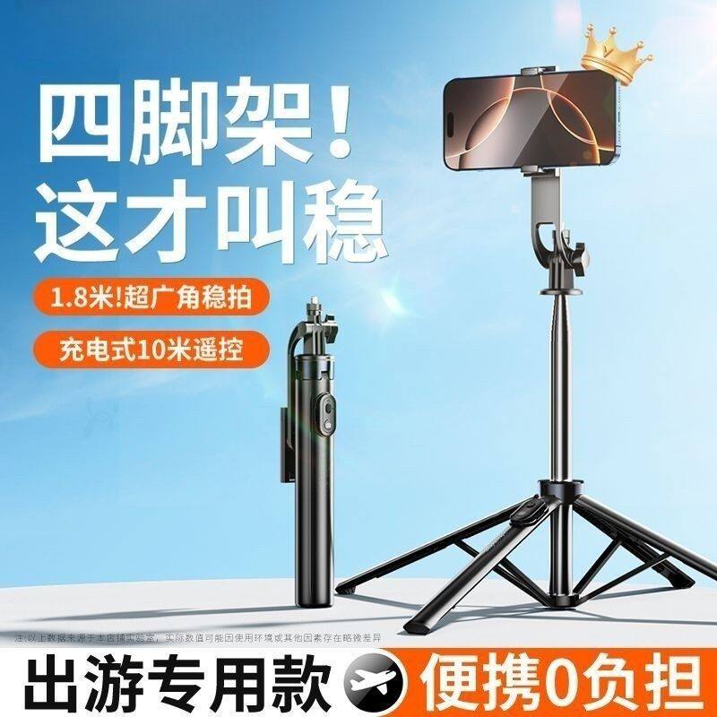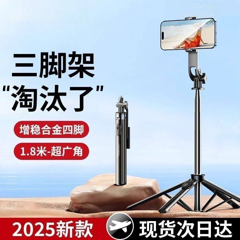 出游专用】手机自拍杆2025新款旅游便携式落地通用三脚架360度旋转蓝牙迷你手持拍照直播神器防抖支架演唱会