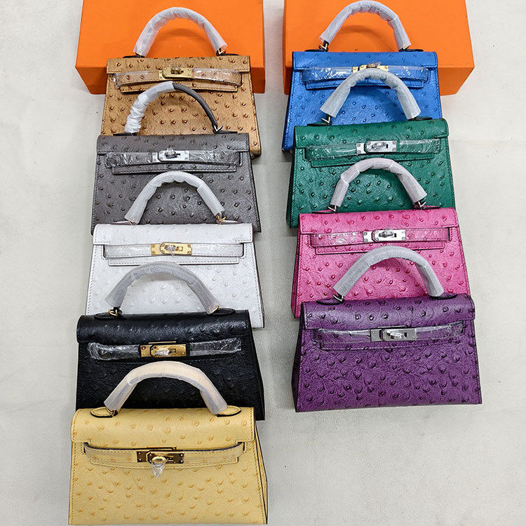 二代凯莉迷你小包真皮头层牛皮鸵鸟纹高定款mini单肩斜挎手提女包