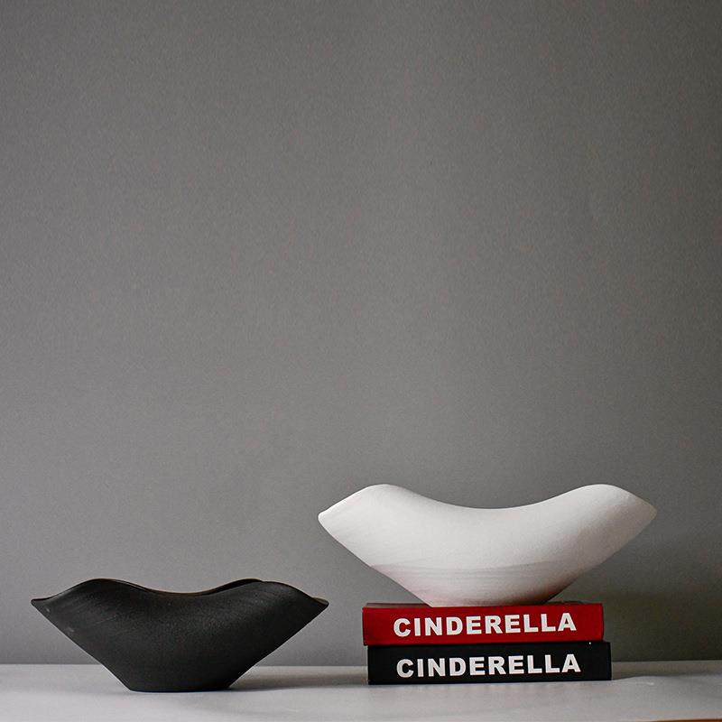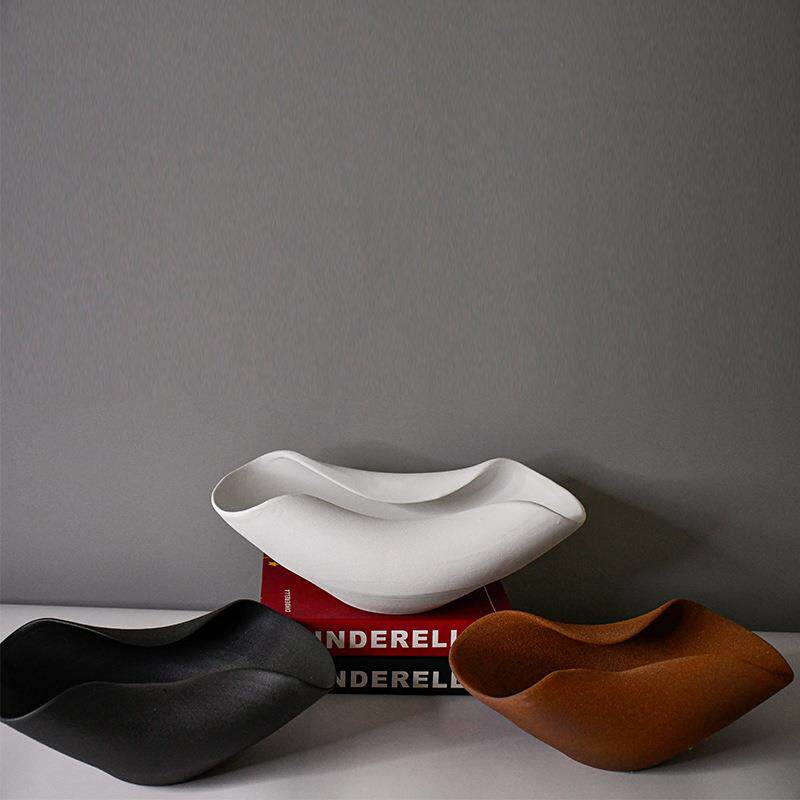 软装手工烧制陶瓷异形陶瓷果盘果篮厚重感简约侘寂风花器