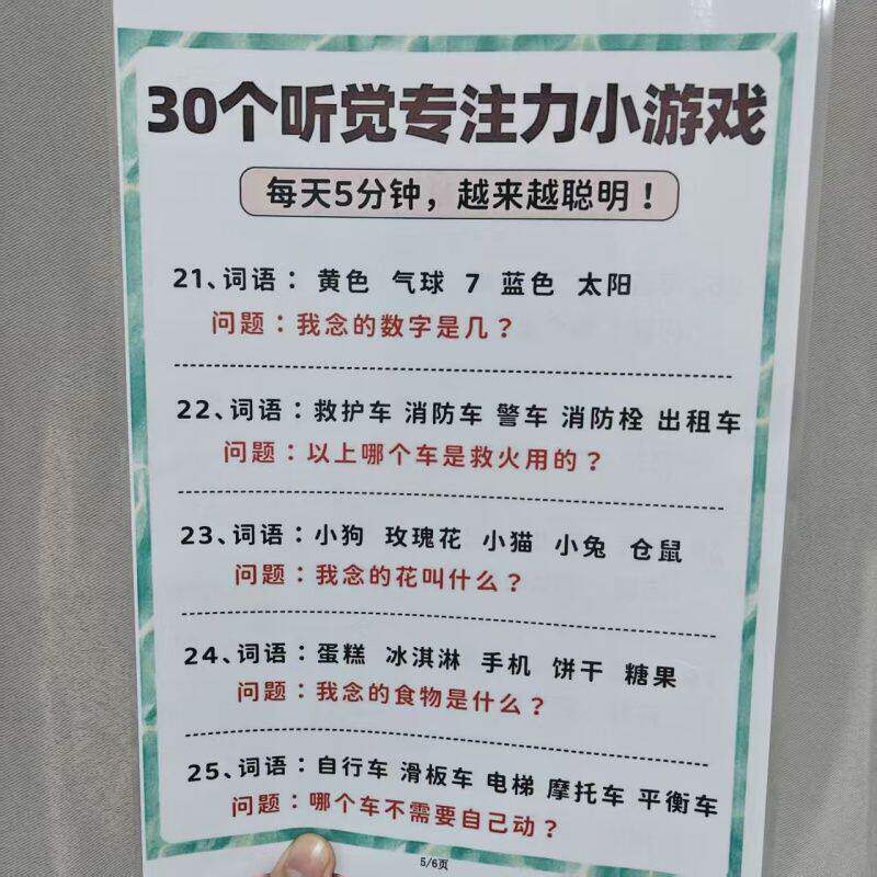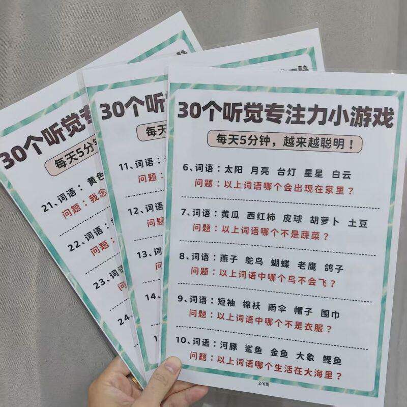 儿童听觉视觉专注力训练思维训练趣味亲子互动益智教学挂图认知卡