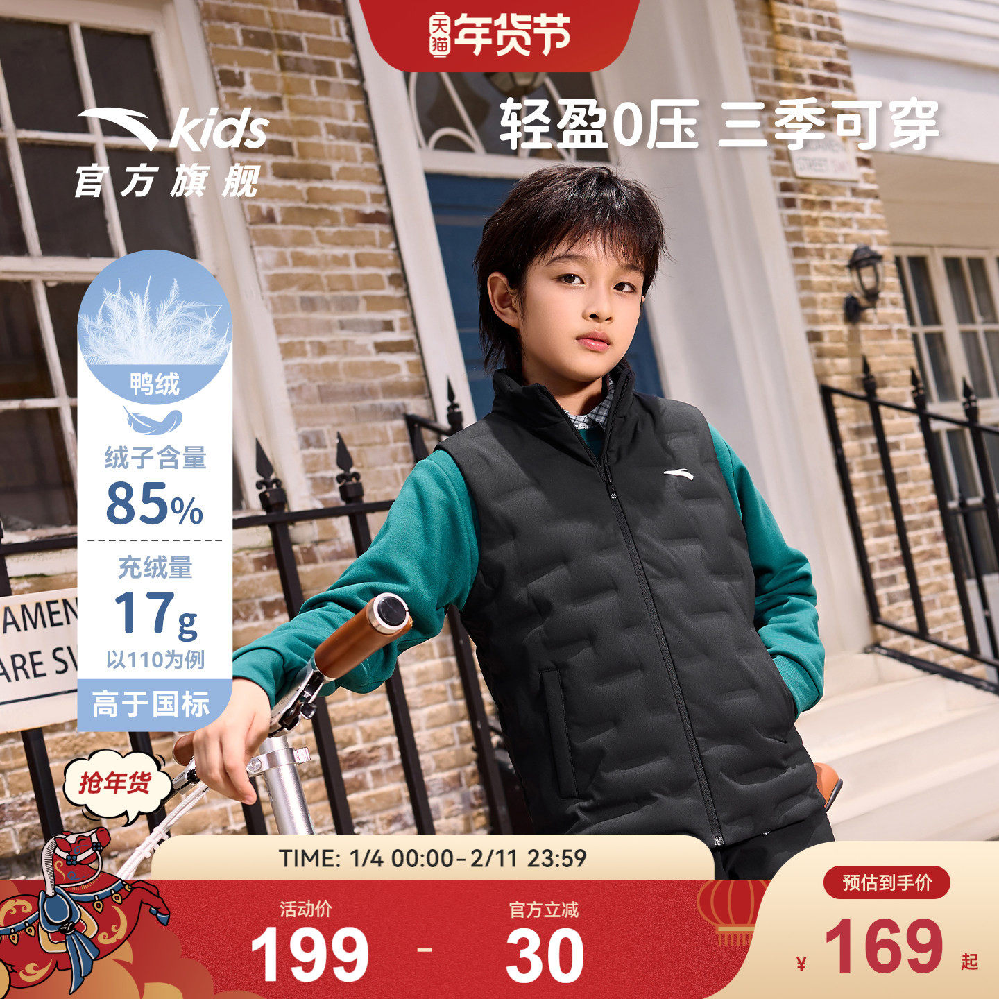 安踏儿童男女童轻薄羽绒马甲2025舒适保暖中大童运动休闲百搭夹克