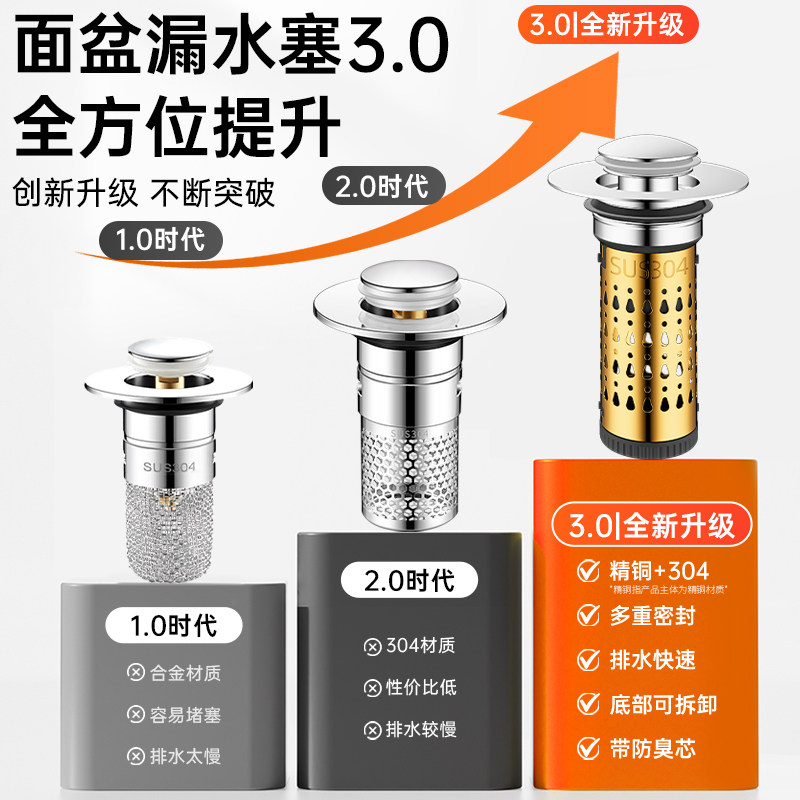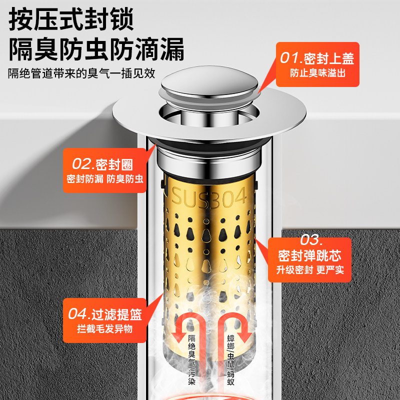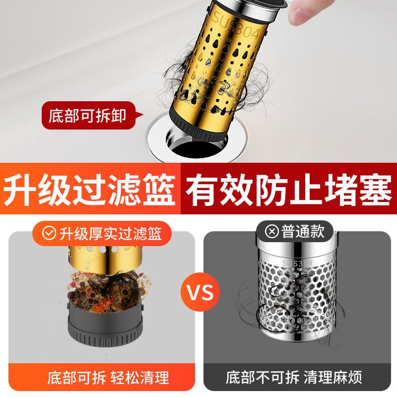 洗手盆漏水塞洗脸盆水池按压式弹跳芯过滤下水器防臭防堵配件通用