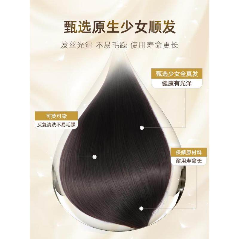 假发女长发自然全头套式真发全真人发轻薄无痕高端整顶锁骨假发套