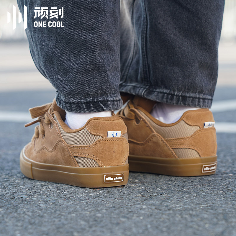 顽刻面包小麦色拼接复古防滑耐磨磨滑板鞋