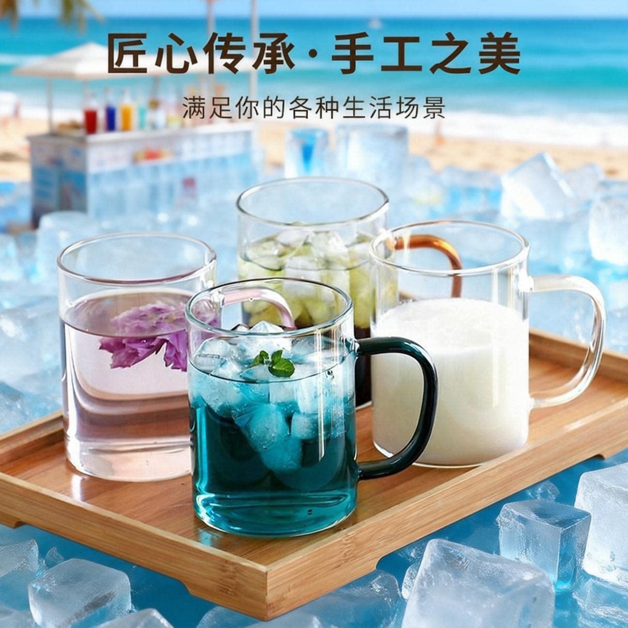 冰川纹玻璃杯子水杯女夏季啤酒杯家用牛奶茶杯男ins风饮料咖啡杯