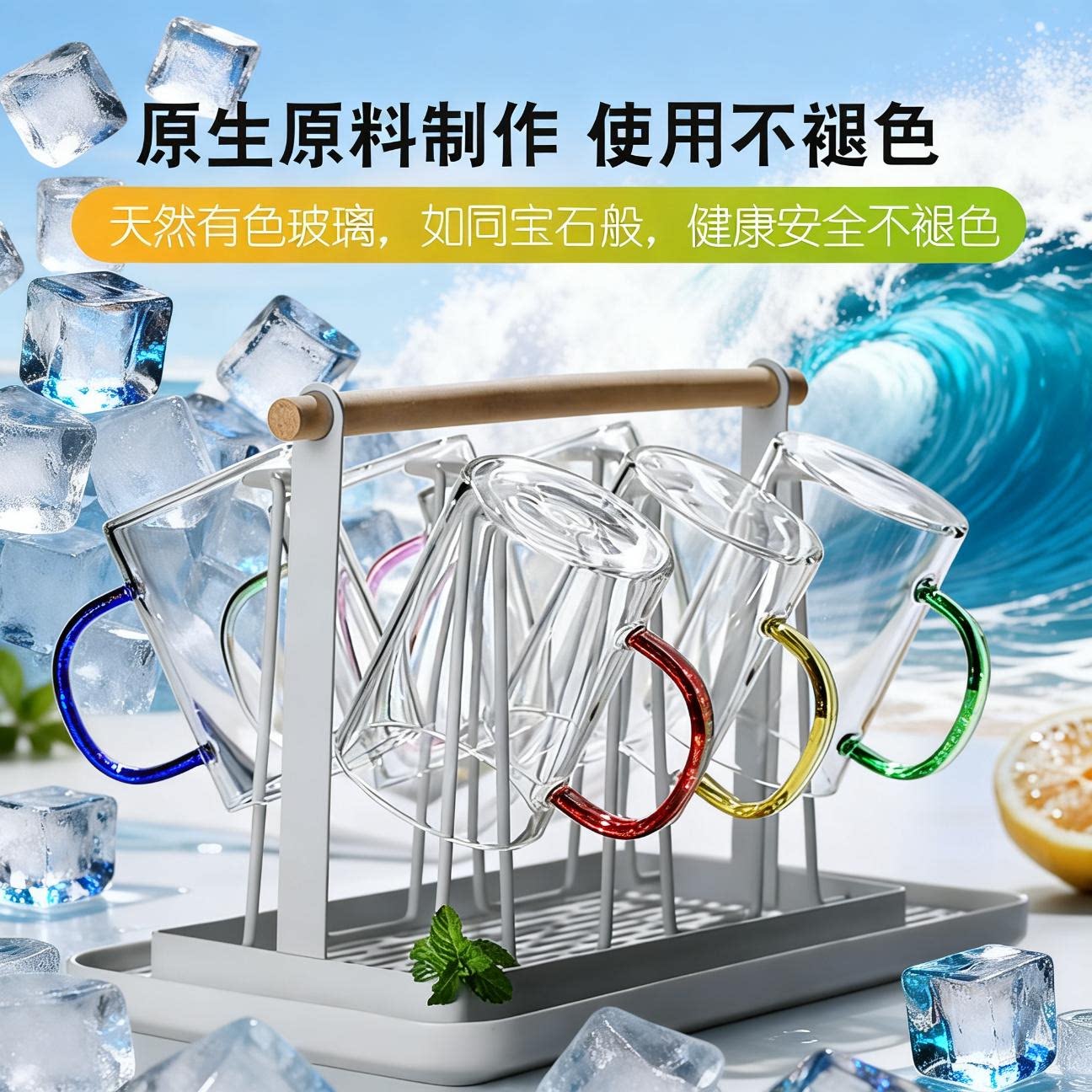 青苹果玻璃杯带把牛奶杯喝水杯家用泡茶杯子高硼硅食品级把手水壶