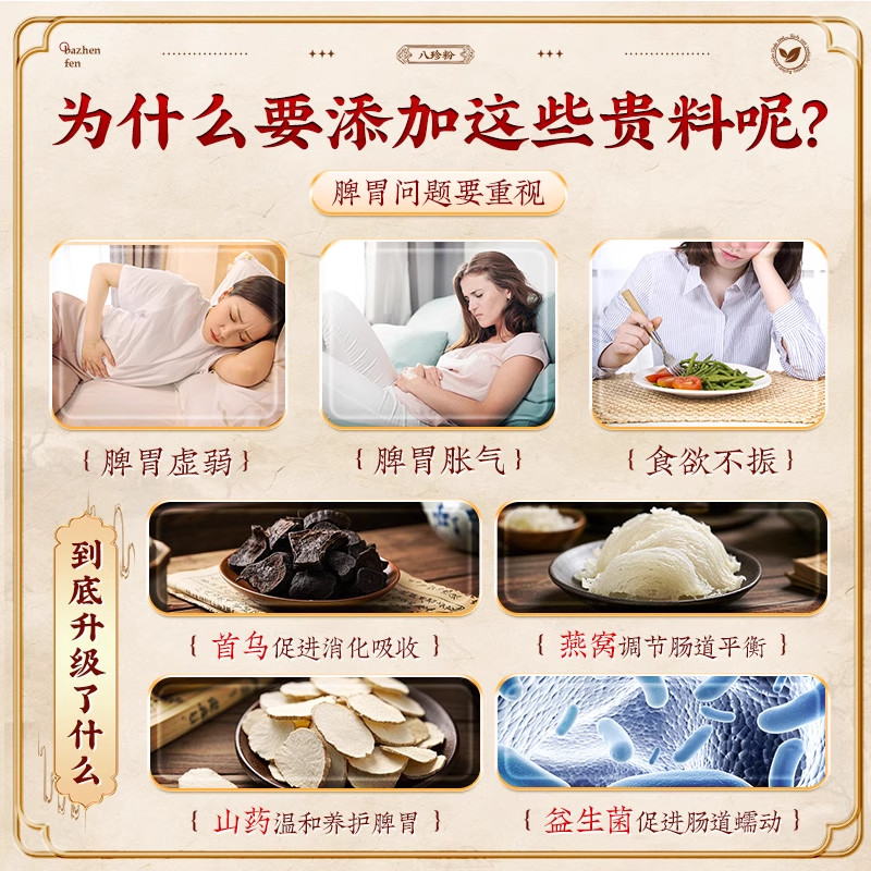 首乌八珍粉健脾胃营养早餐燕窝养胃代餐粉饱腹旗舰店山药茯苓健康