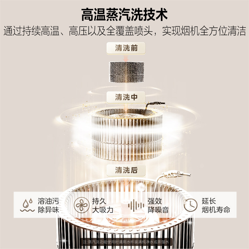 美的蒸汽洗抽油烟机家用厨房顶侧一体官方旗舰店变频大吸力烟机