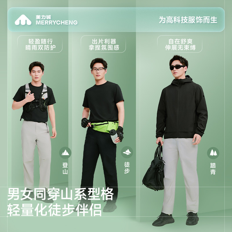 【新品】美力城户外轻量化徒步登山软壳裤防水透气休闲裤男女同款