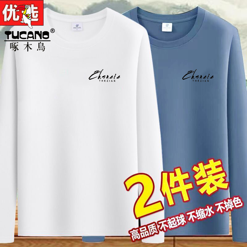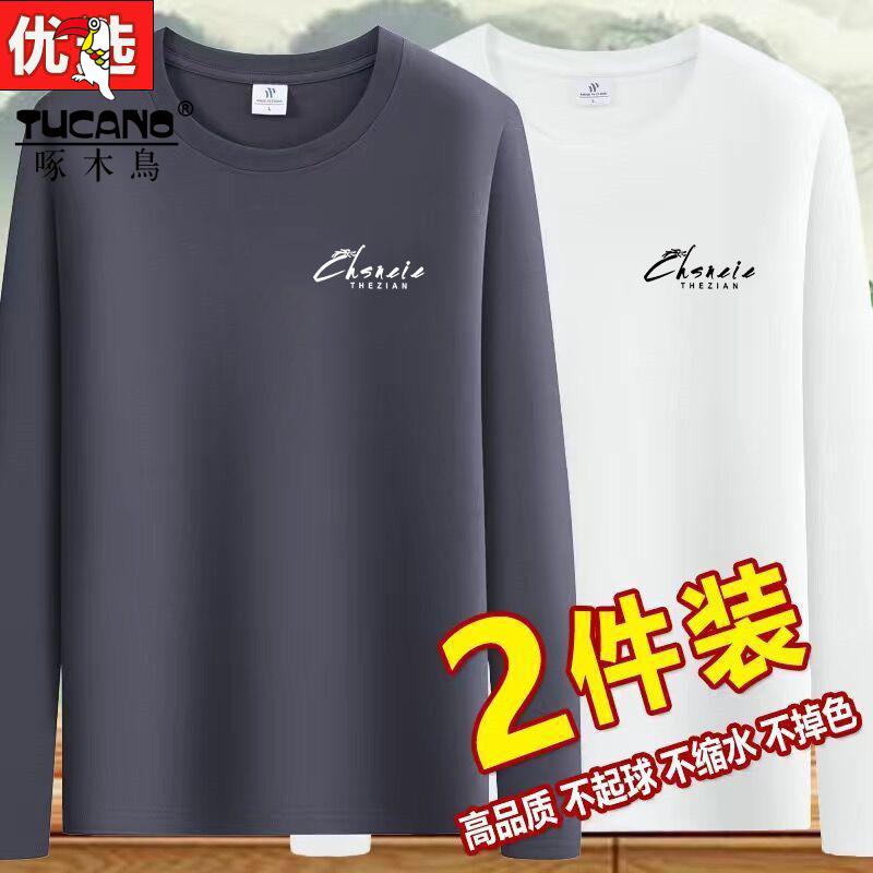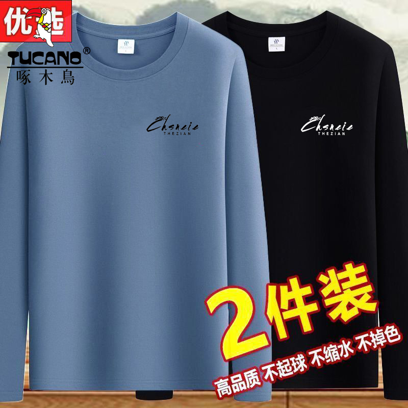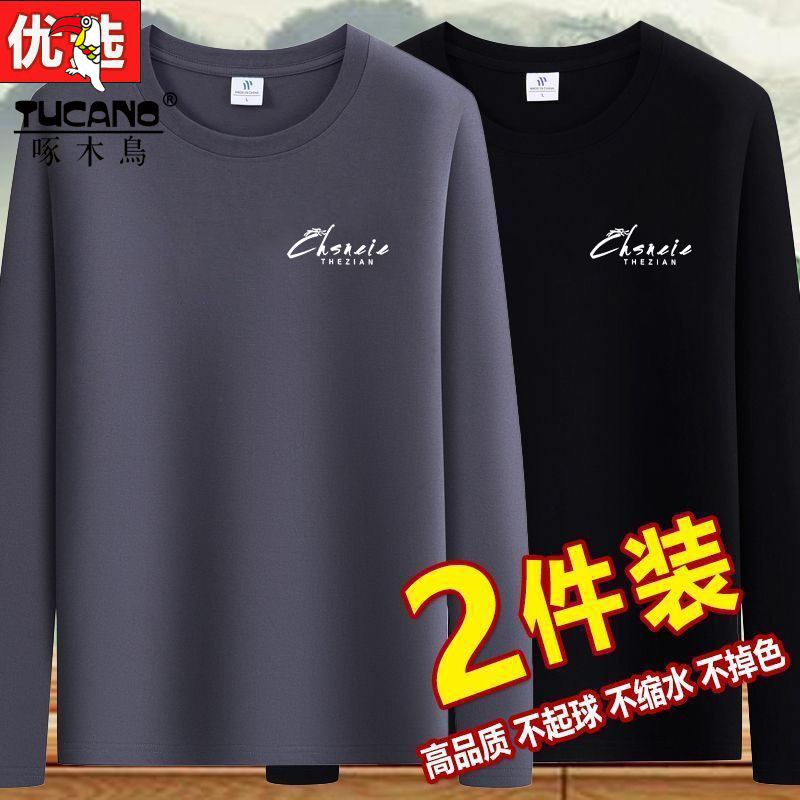 啄木鸟男士休闲百搭长袖t恤春秋季新款印花上衣宽松大码圆领体恤