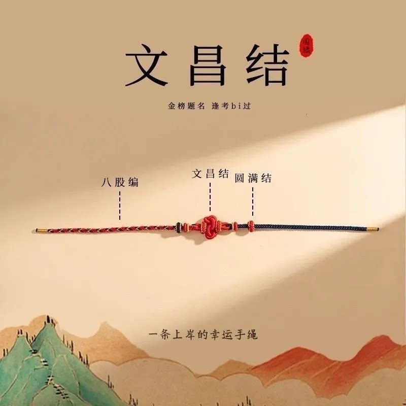 2026年许愿手绳民族风编织锦鲤许愿文昌结手绳金榜题名原创国潮