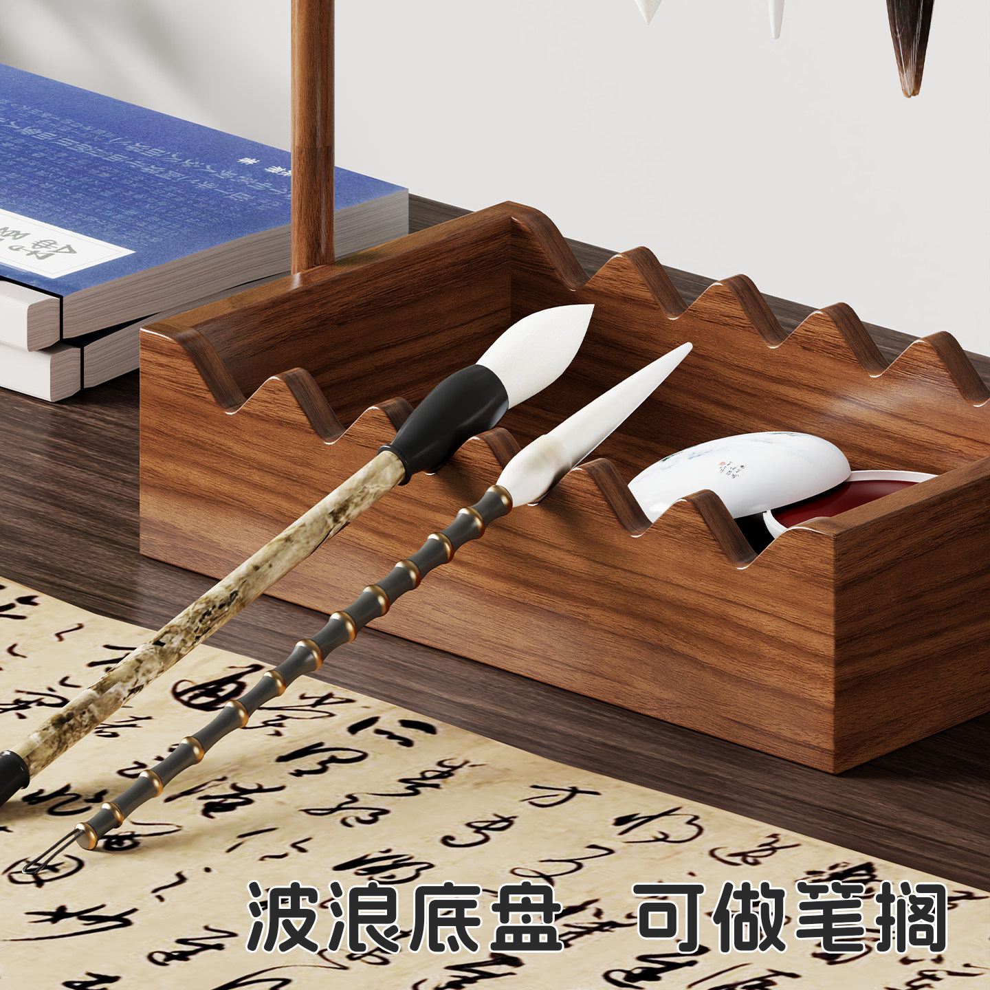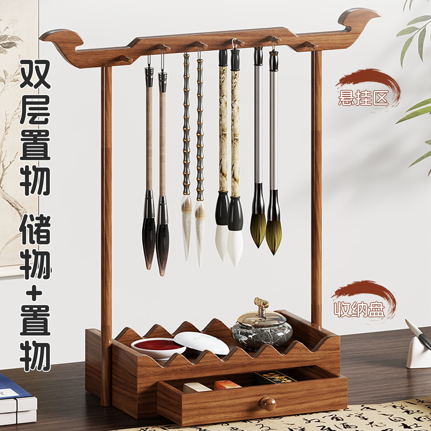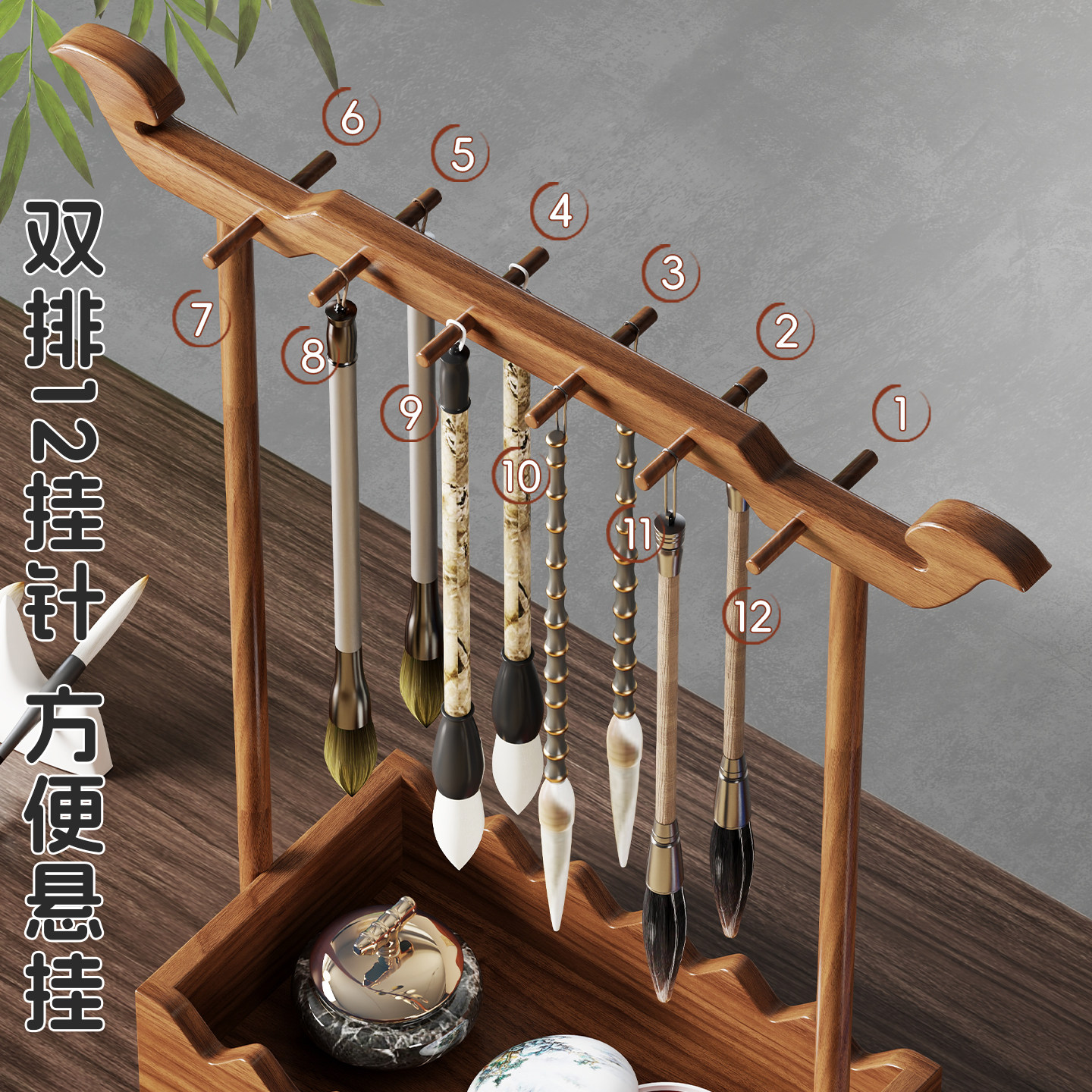 书房书法笔架桌面毛笔挂架文房四宝收纳架中式书画毛笔展示架摆件
