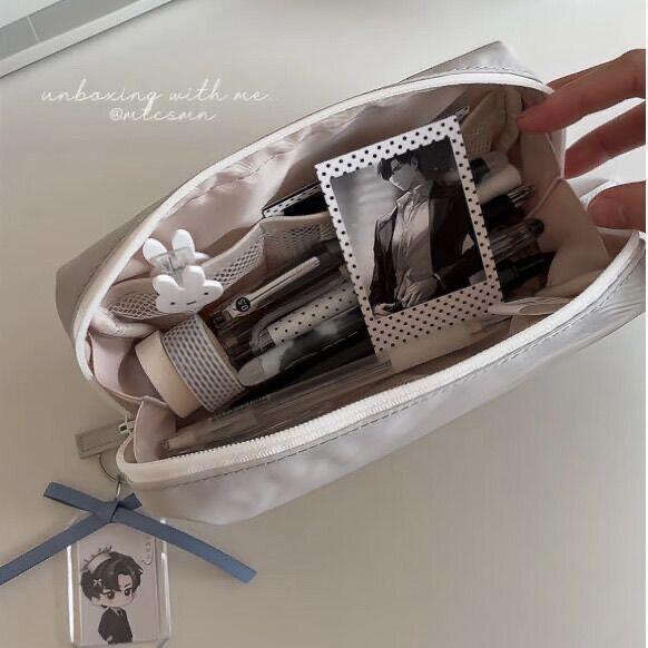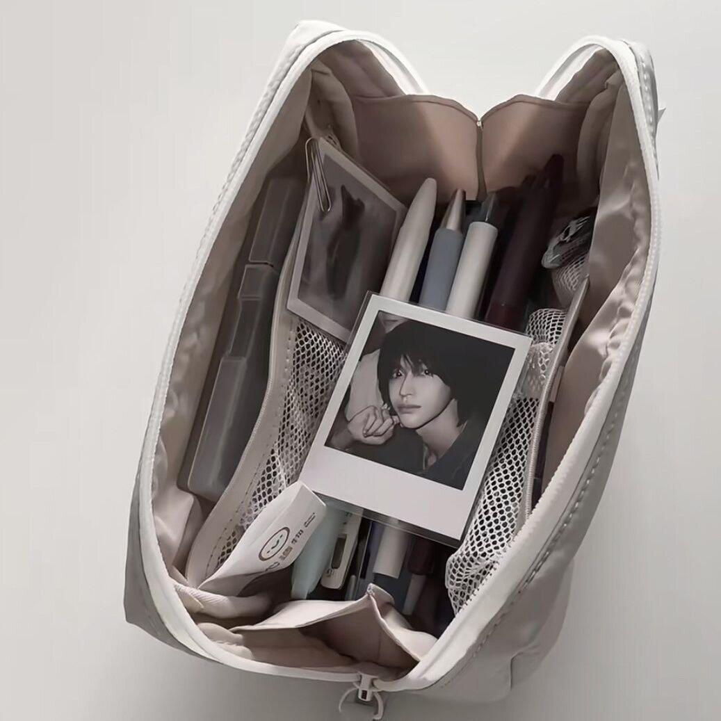 纯色fufu灰笔袋高颜值收纳简约大容量学生小众ins收纳袋文具耐脏